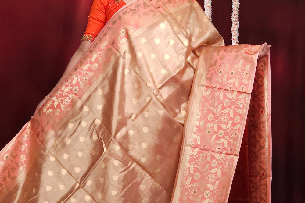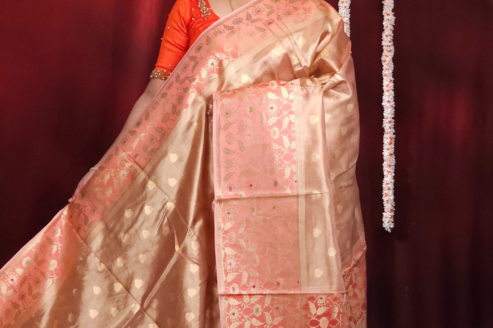 Peach Banarasi Tissue Saree