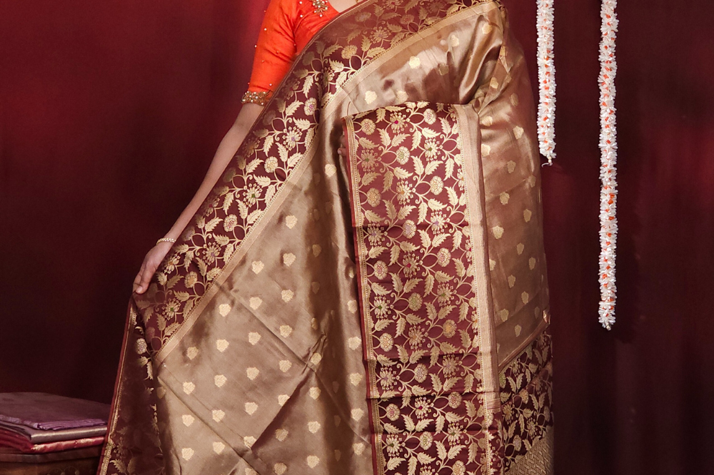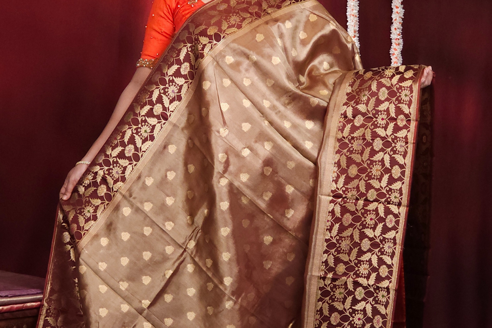 Coffee Brown Banarasi Tissue Saree