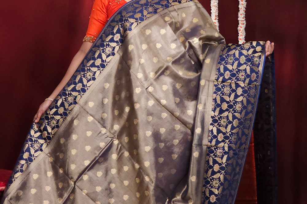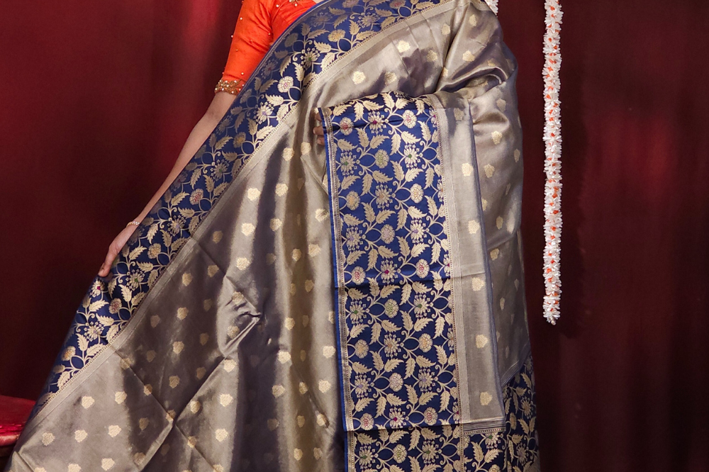 Navy Blue Banarasi Tissue Saree