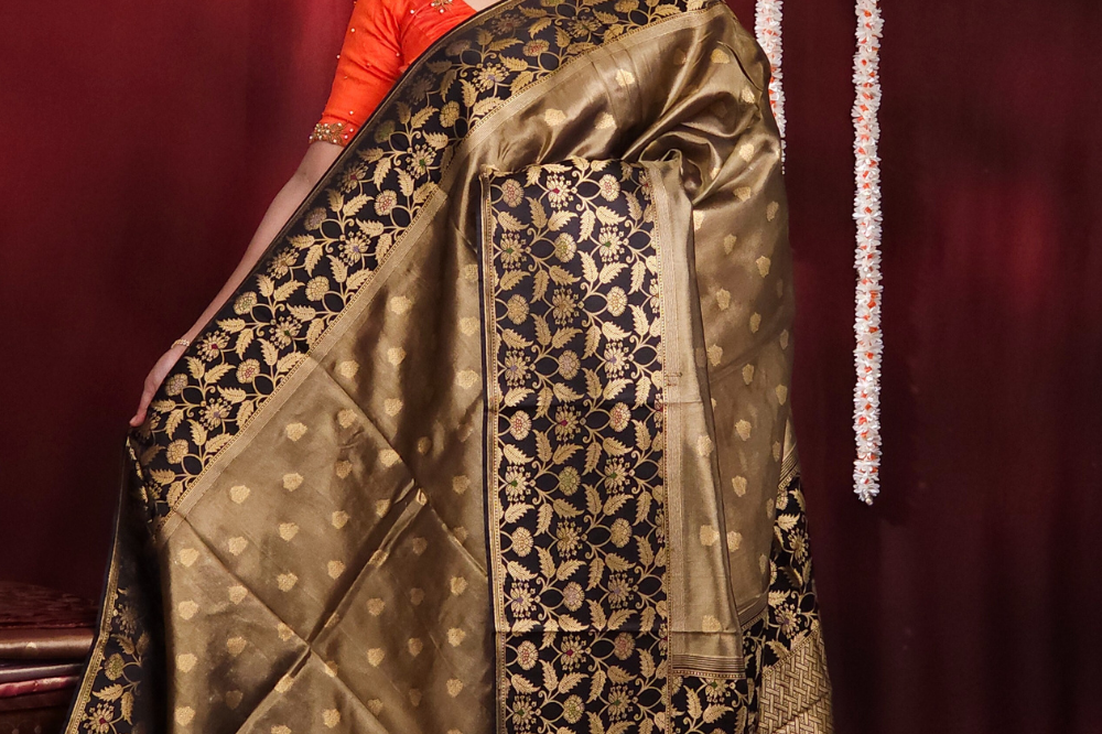 Black Banarasi Tissue Saree
