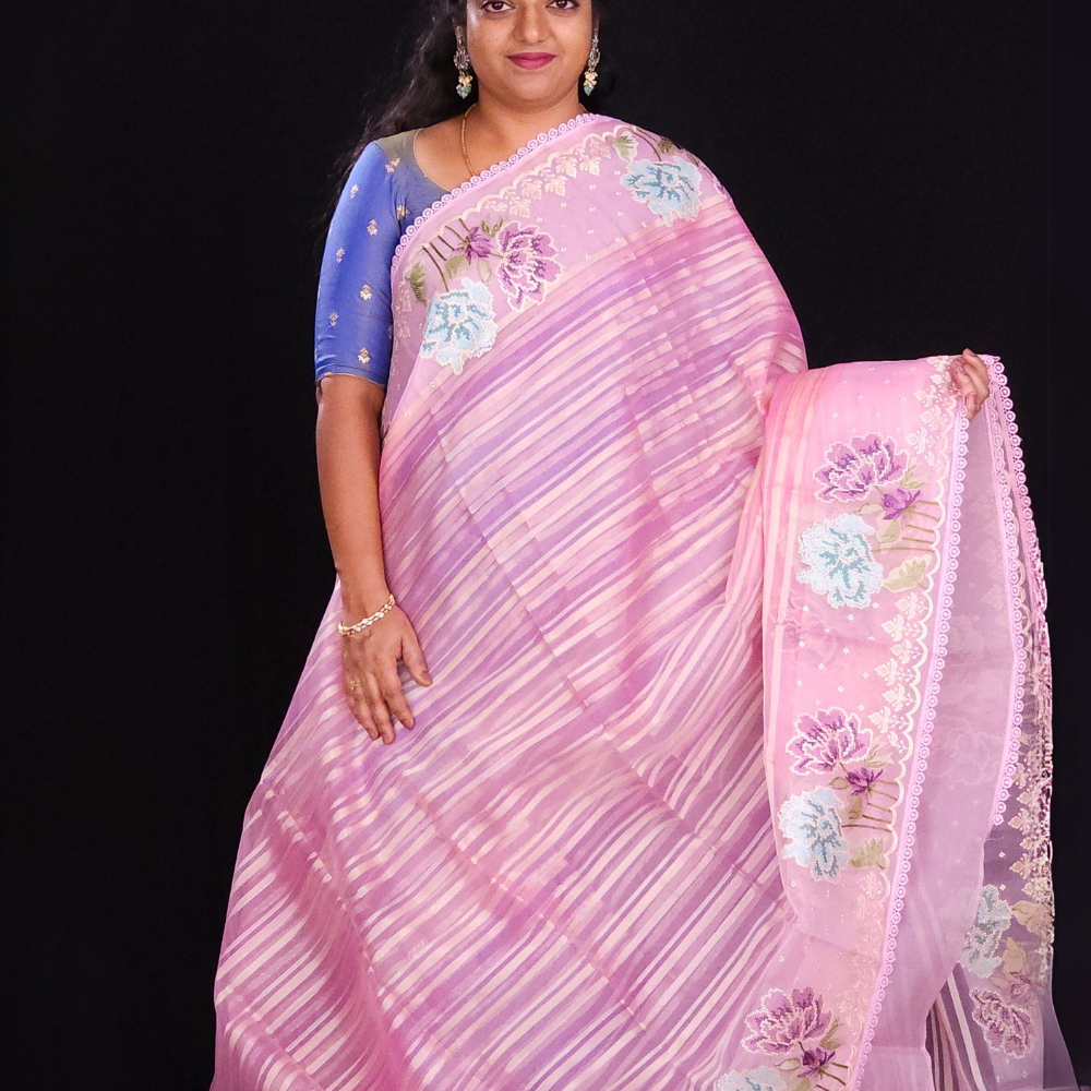 Baby Pink Organza Saree