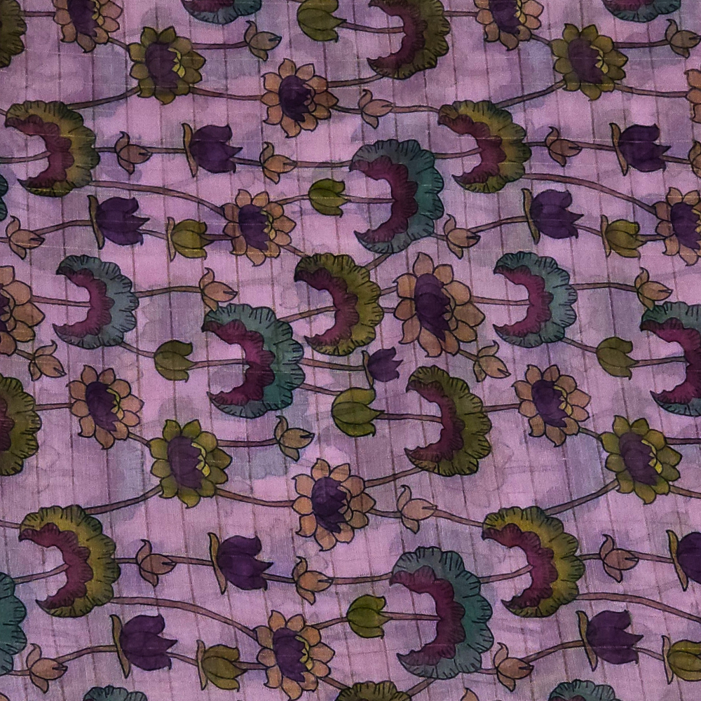 Elevate your style with our stunning Organza Saree Allover horizantal lines , unique embroidery borders with one inch lace detailing and pallu paired with running Digital print Blouse