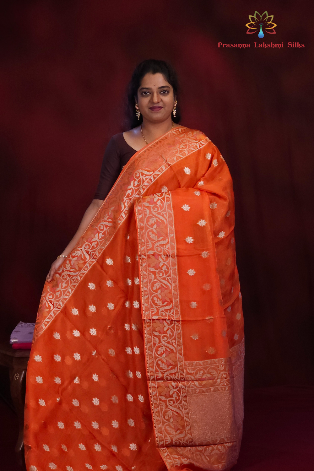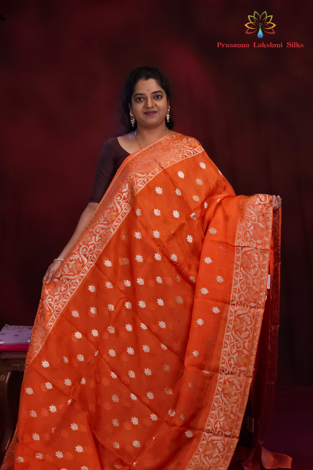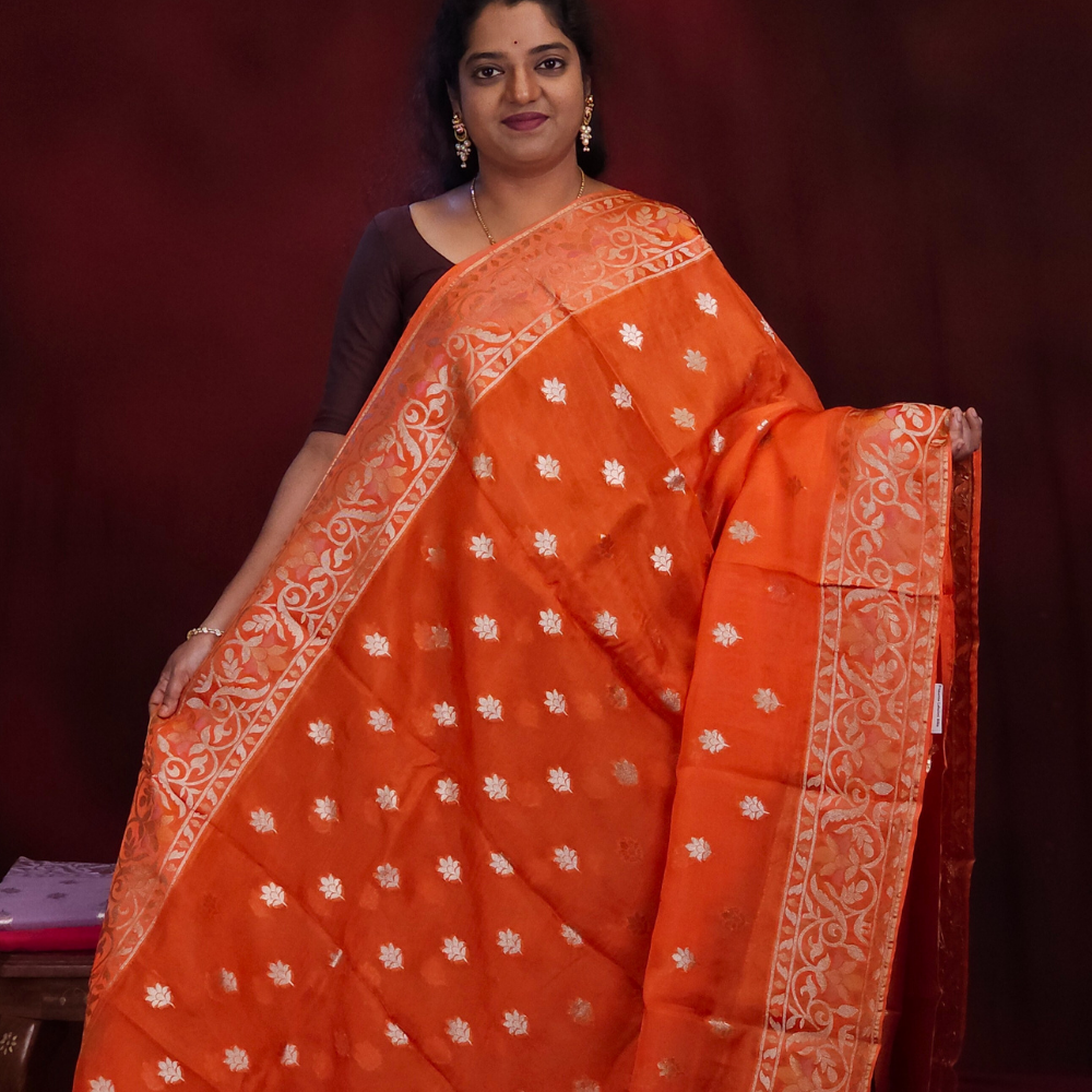 Orange Banarasi Organza sarees