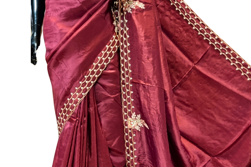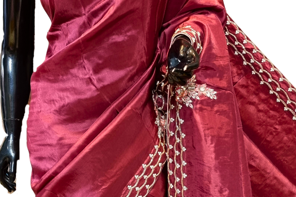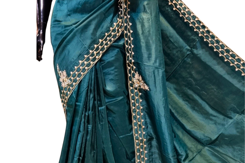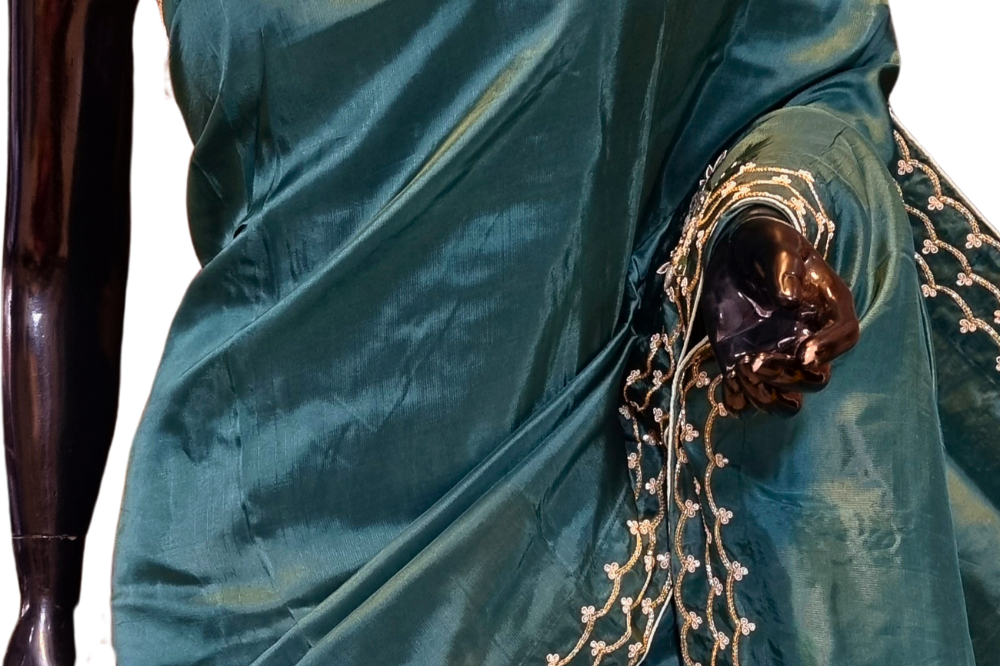 Prussian Blue and Light Grey Chinnon Silk Saree