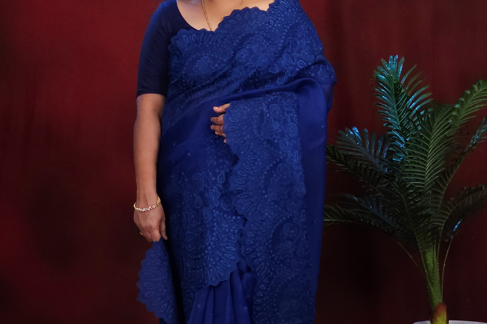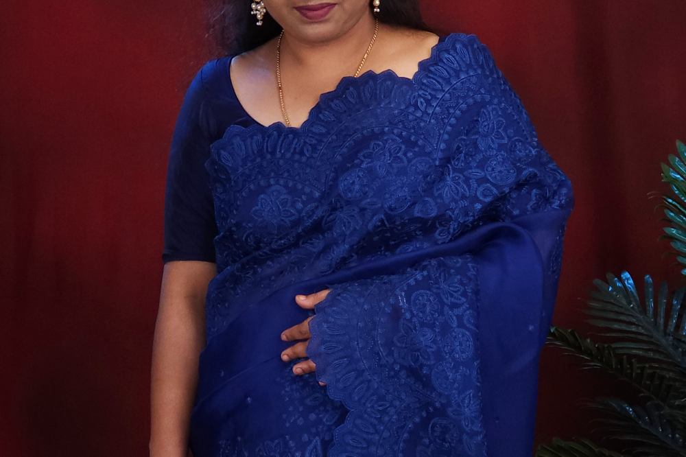 Navy Blue Handcrafted Organza Saree