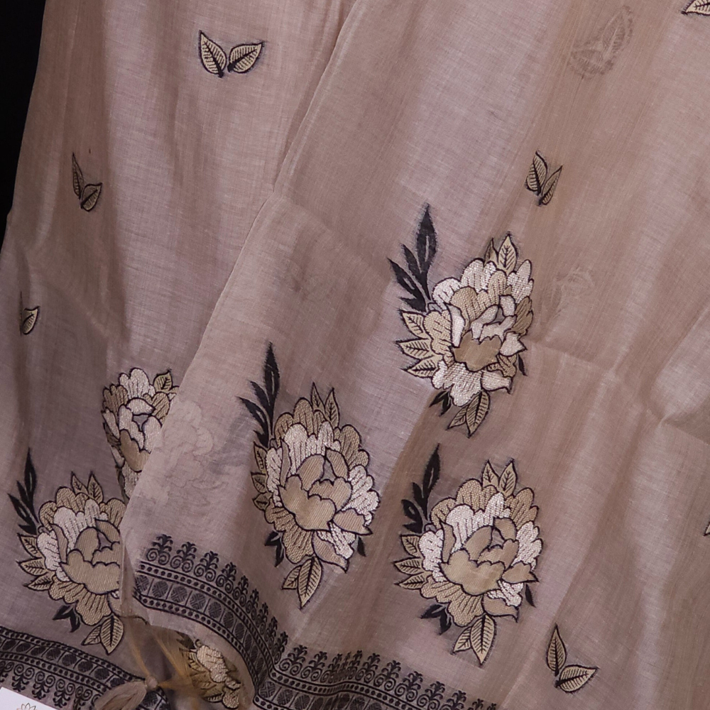 Elegant Chanderi top with allover thread motifs and floral Thread-woven bunches, paired with a plain bottom and a richly woven dupatta paired with tassels.....