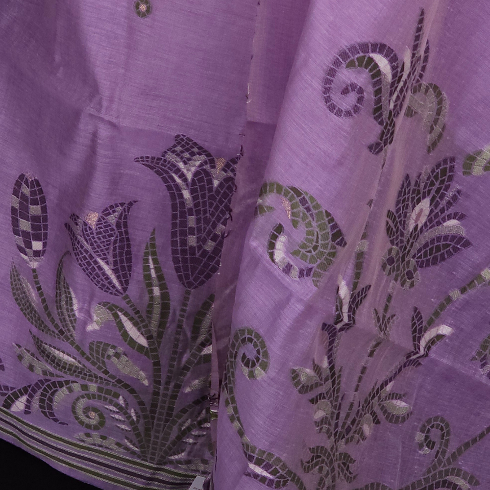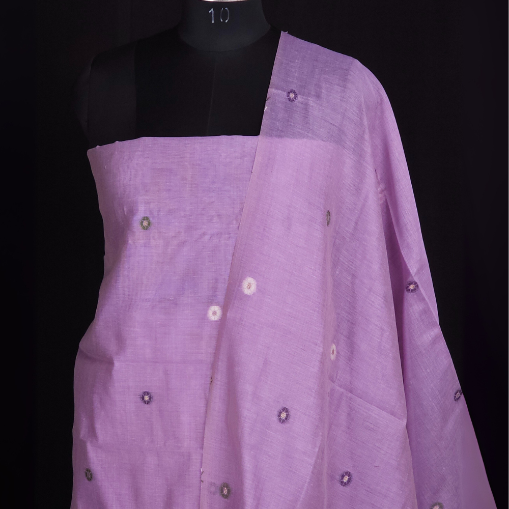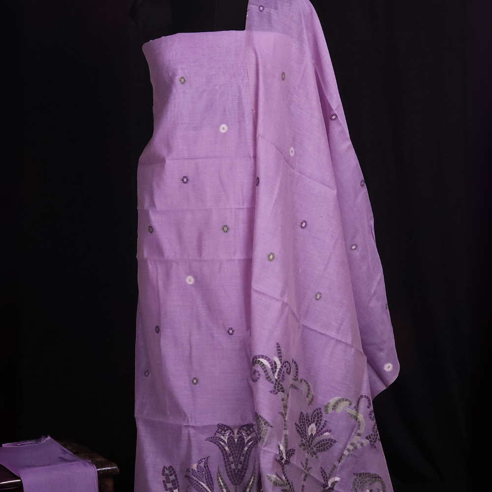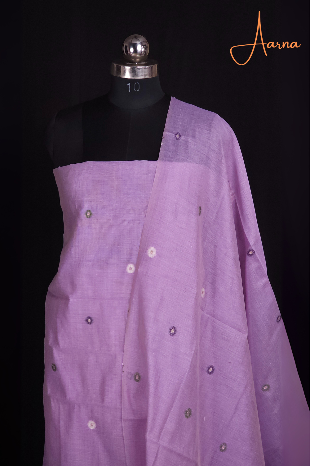 Elegant Chanderi top with allover thread motifs and floral Thread-woven bunches, paired with a plain bottom and a richly woven dupatta paired with tassels.....