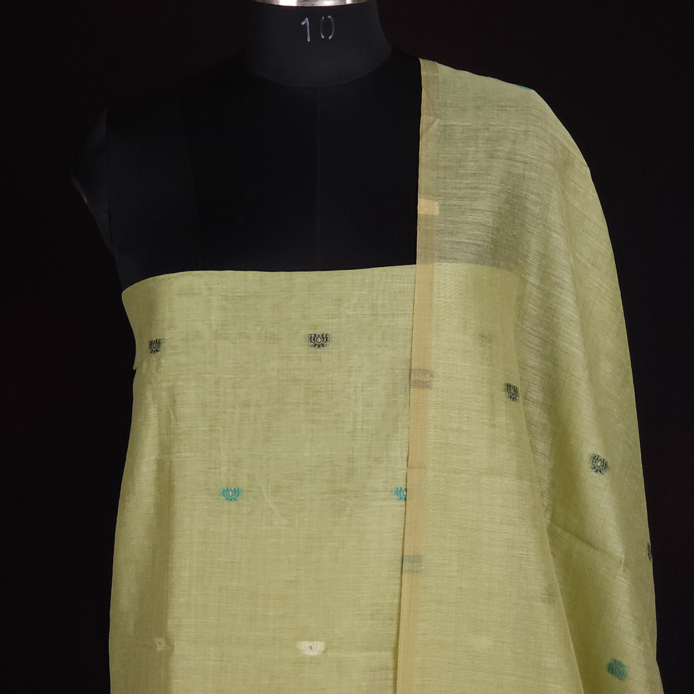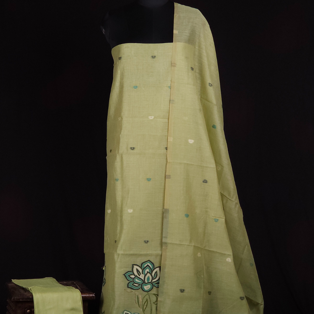 Pista Green Chanderi Dress Material