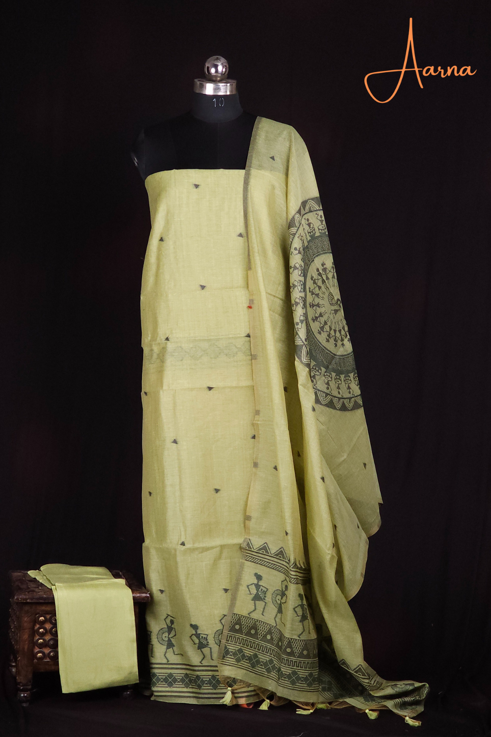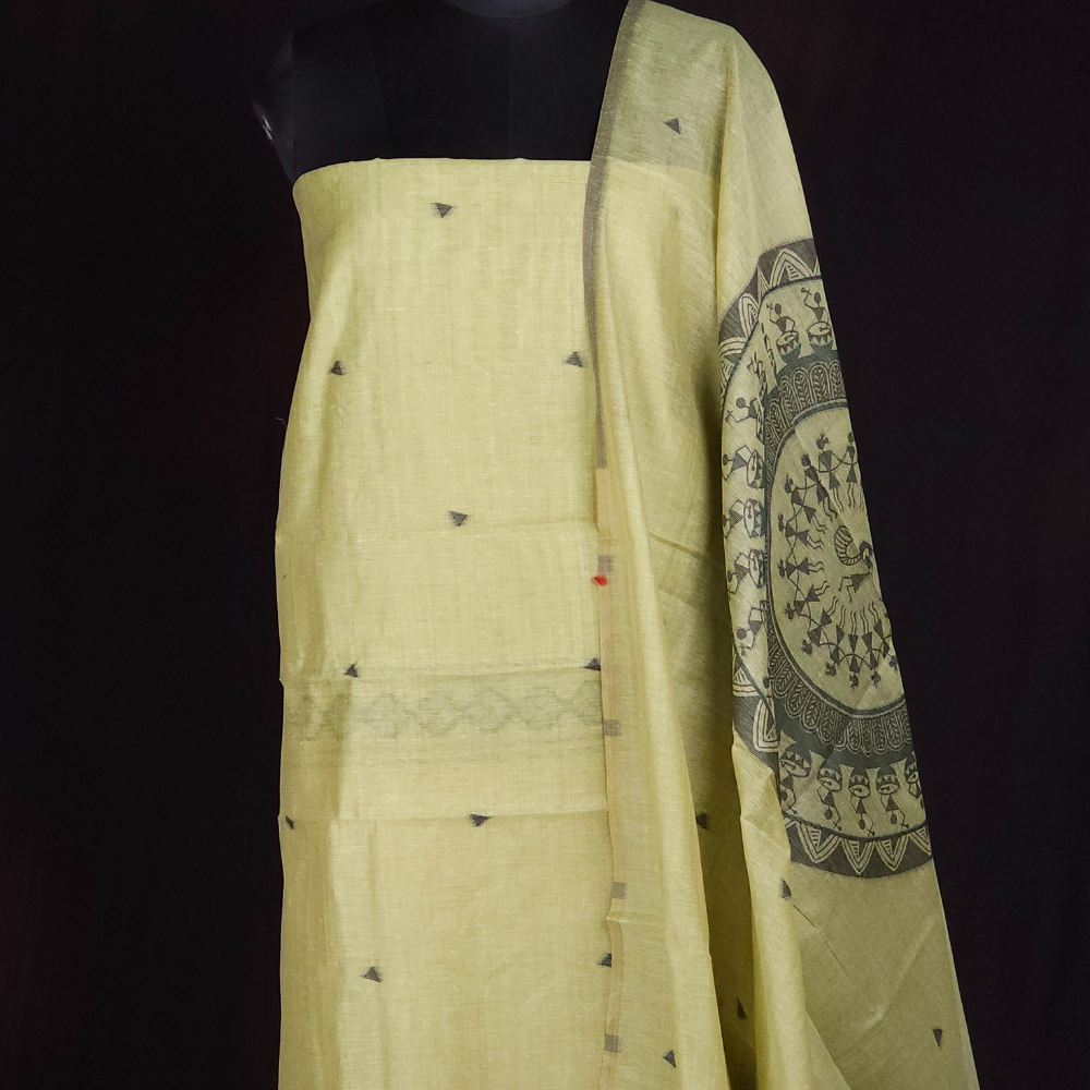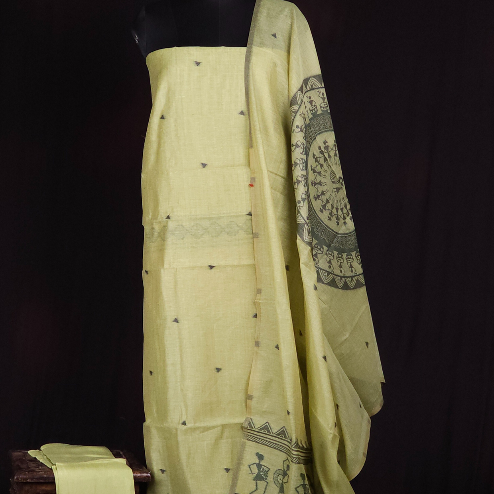Pista Green Chanderi Dress Material
