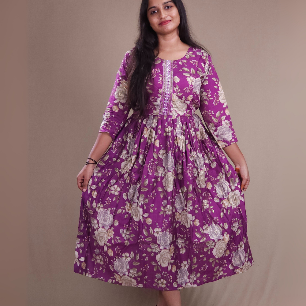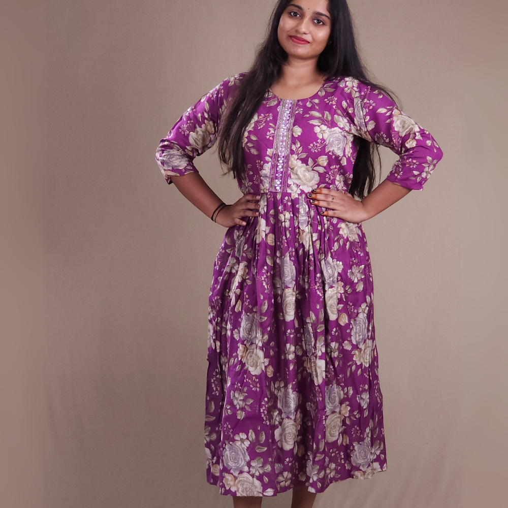 Step into effortless elegance with our pure cotton frocks featuring delicate floral prints. Designed for comfort and everyday charm, these frocks are breathable, lightweight, and perfect for sunny days.