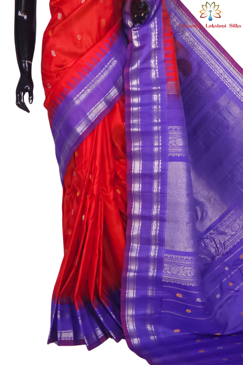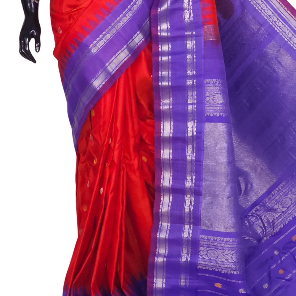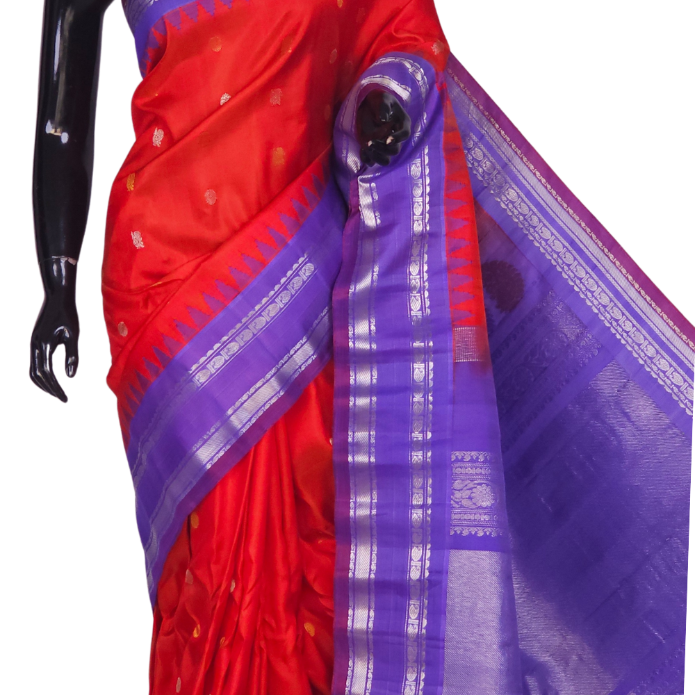 Elevate your elegance with our exquisite Handloom Gadwal Pure Silk Saree, adorned with Intricate zari motifs zari-woven borders Rich zari-woven brocade adorns the pallu, making every drape a statement.