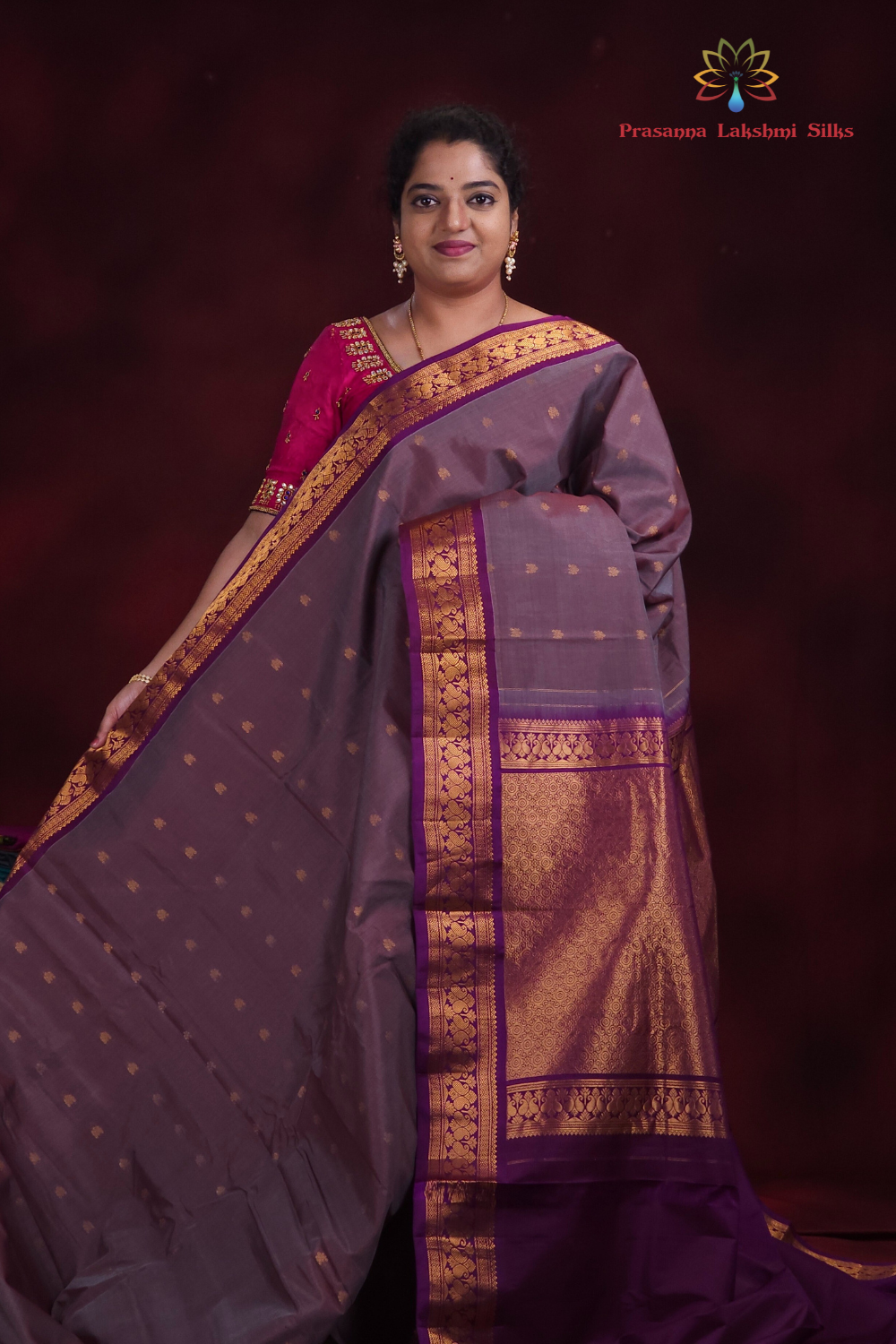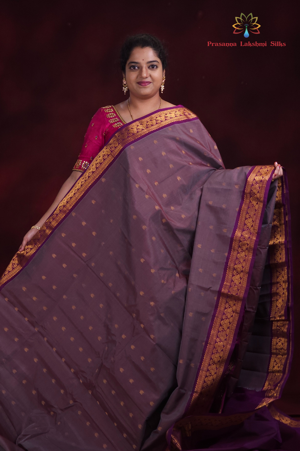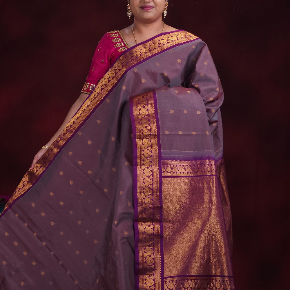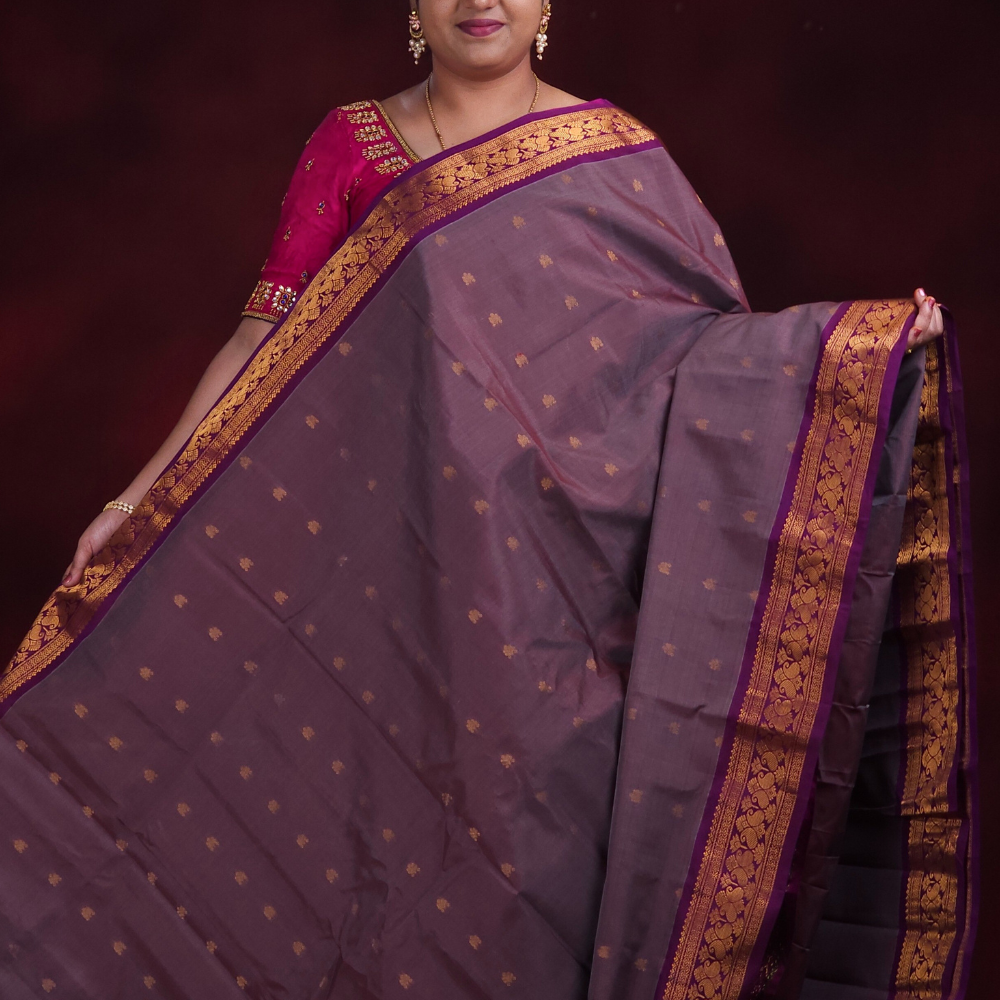 Dual Shade of Grey & Mavne Gadwal Silk Cotton Saree