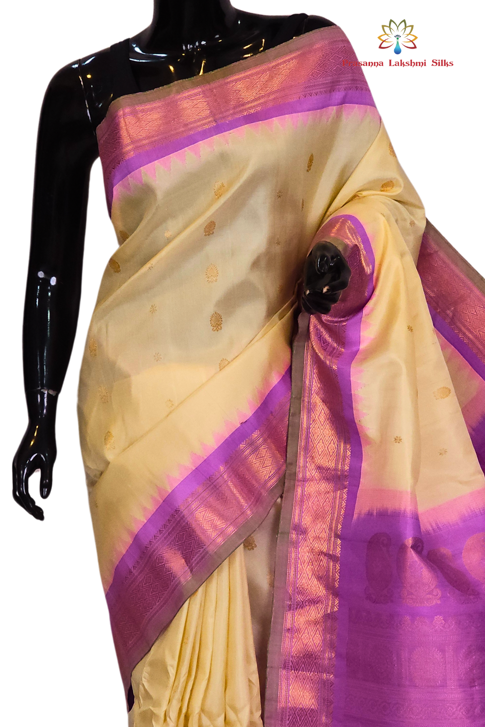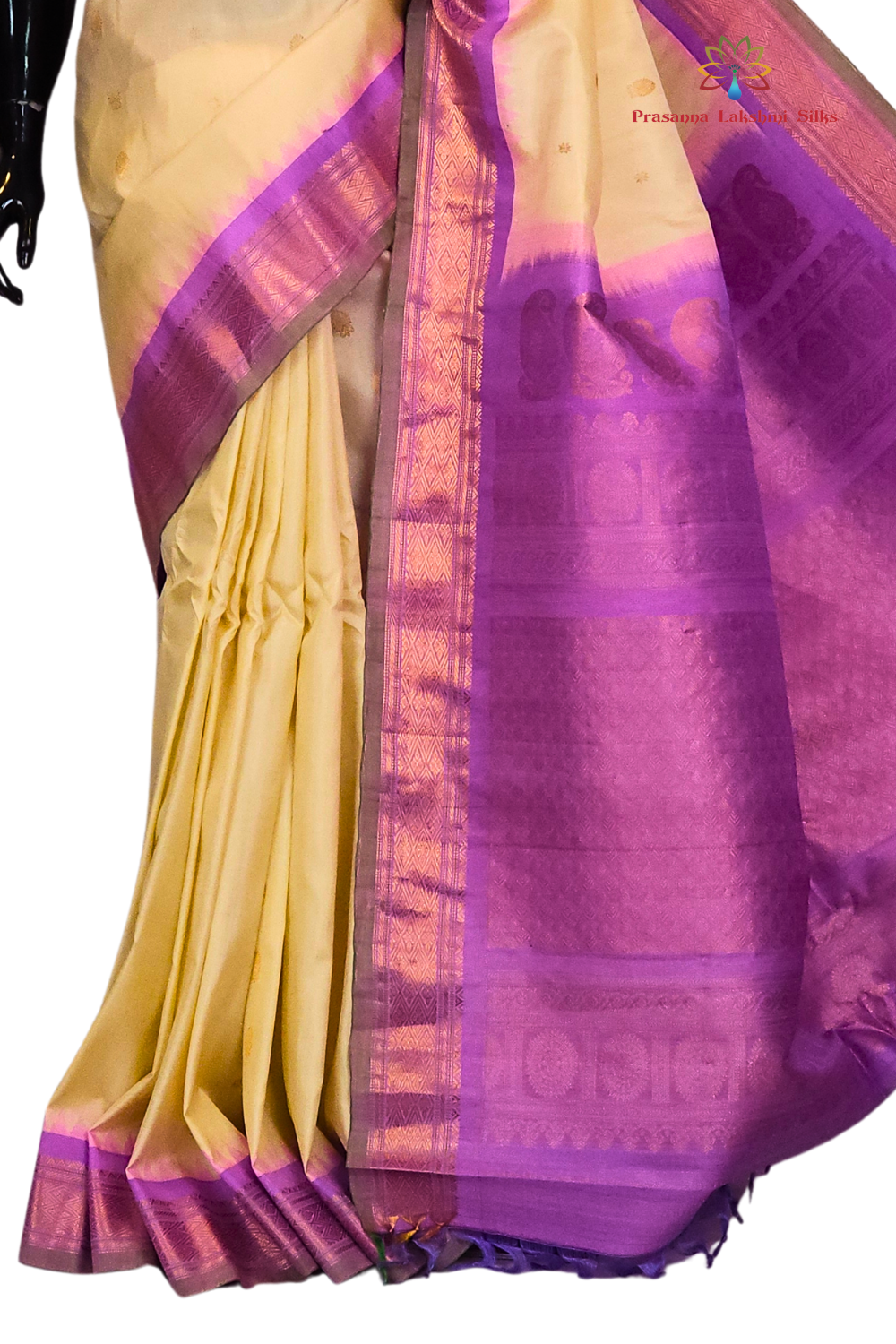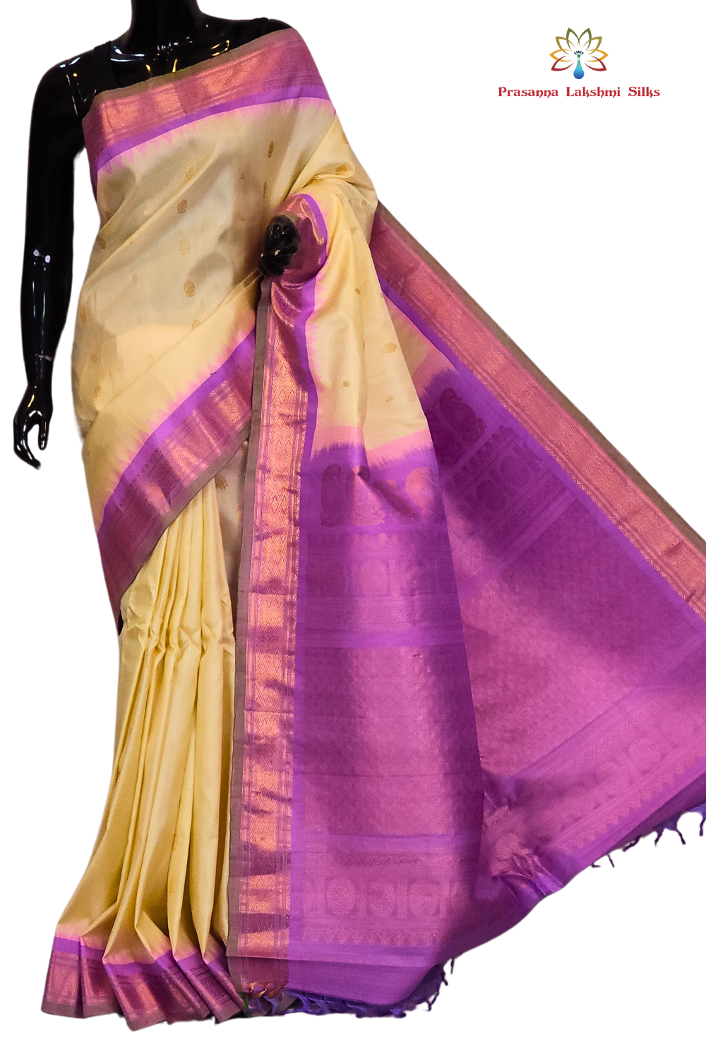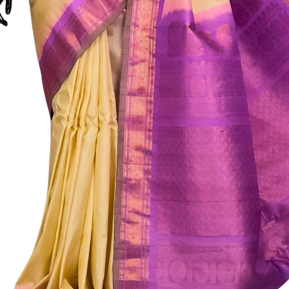 Light sandal and lavender Gadwal small butta silk sarees