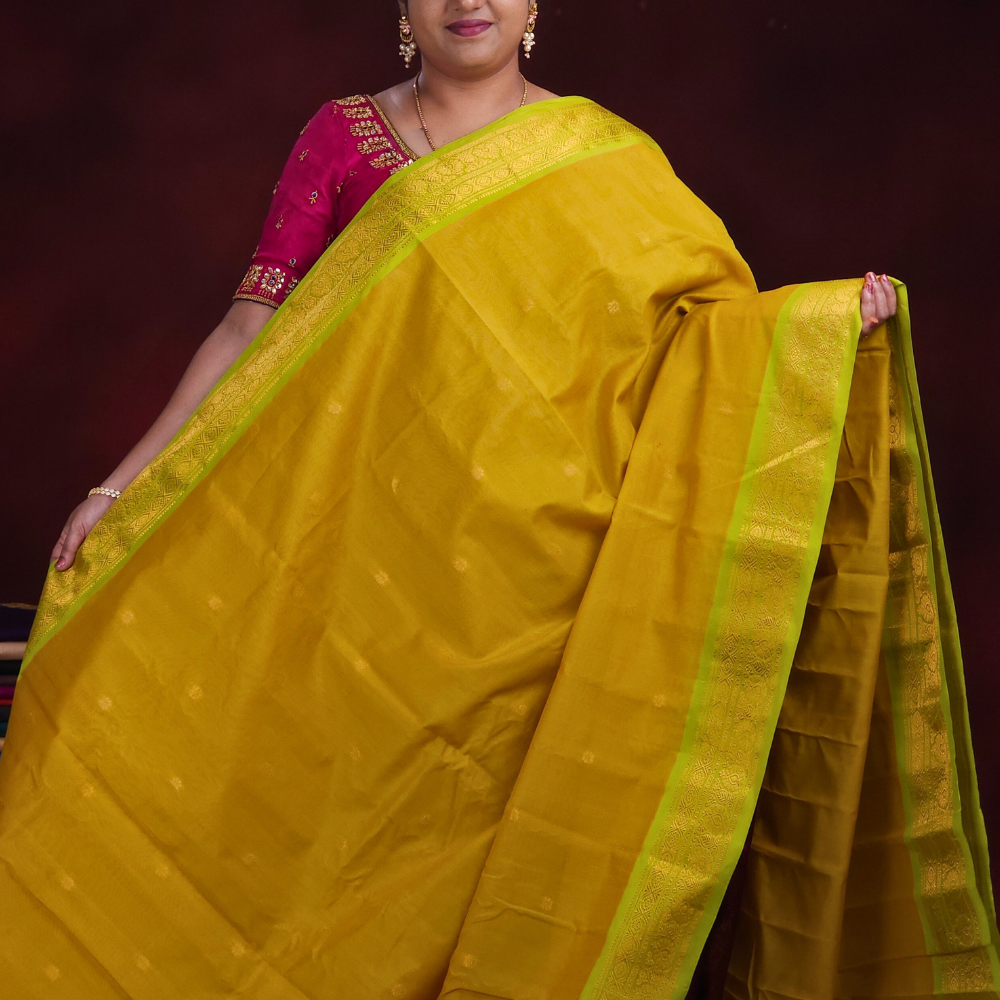 Elevate your style with our stunning Gadwal Silk Cotton Saree, featuring Intricate zari woven motifs with zari woven self borders luxurious brocade pallu paired with blouse ...