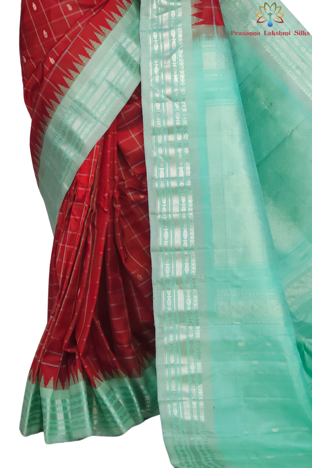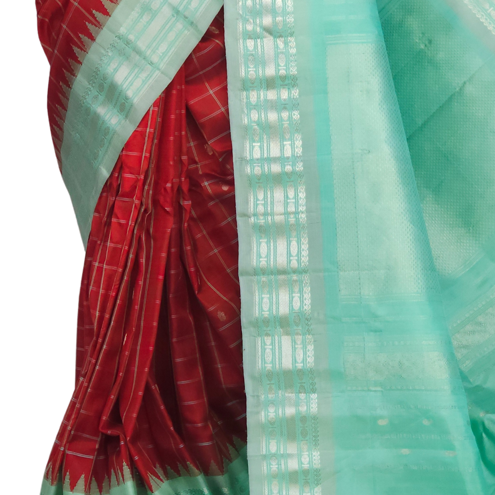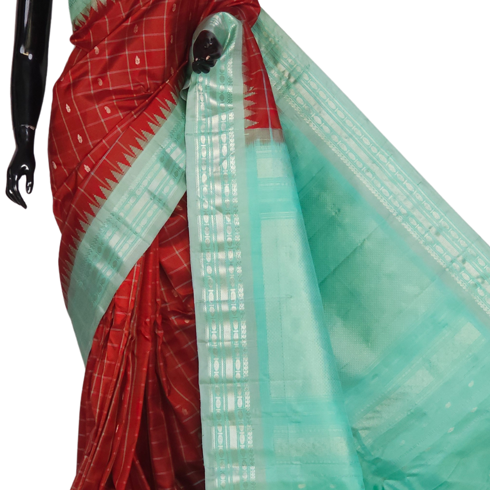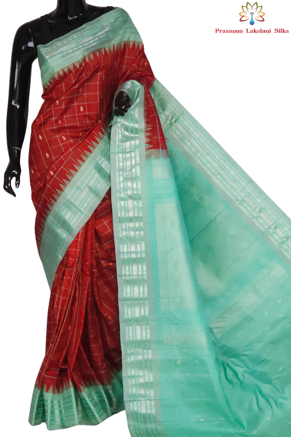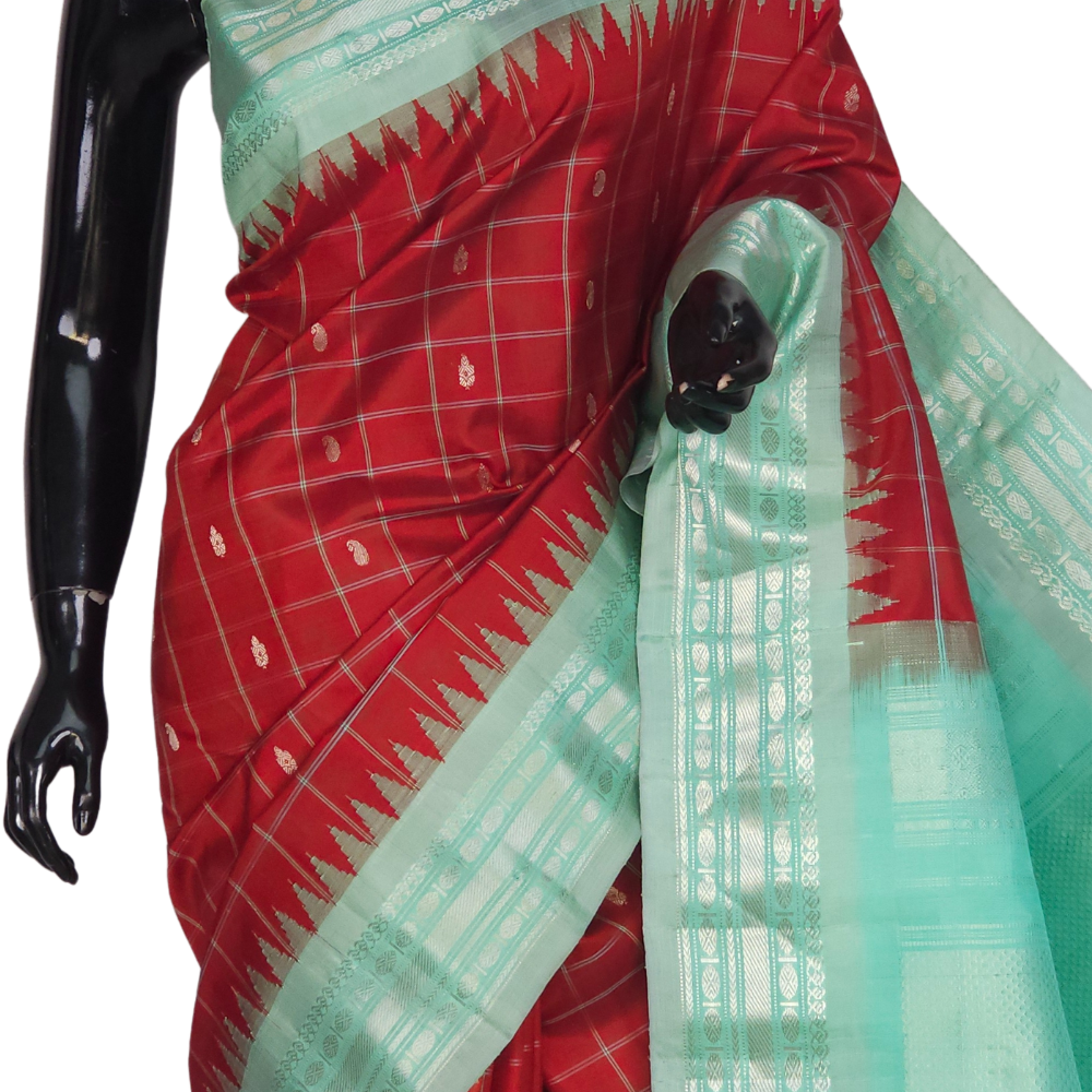 Elevate your elegance with our exquisite Handloom Gadwal Pure Silk Saree, adorned with classic checks pattern creating a timeless and elegant look with zari-woven borders and Rich zari-woven brocade that adorns the pallu, making every drape a statement.