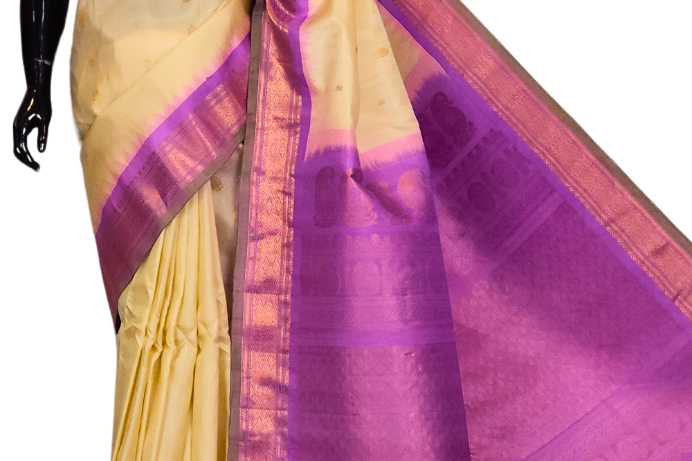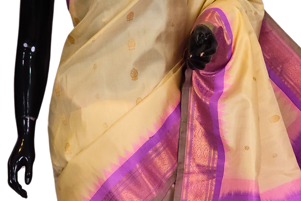 Cream and onion pink Gadwal Meena Brocade Silk Sarees