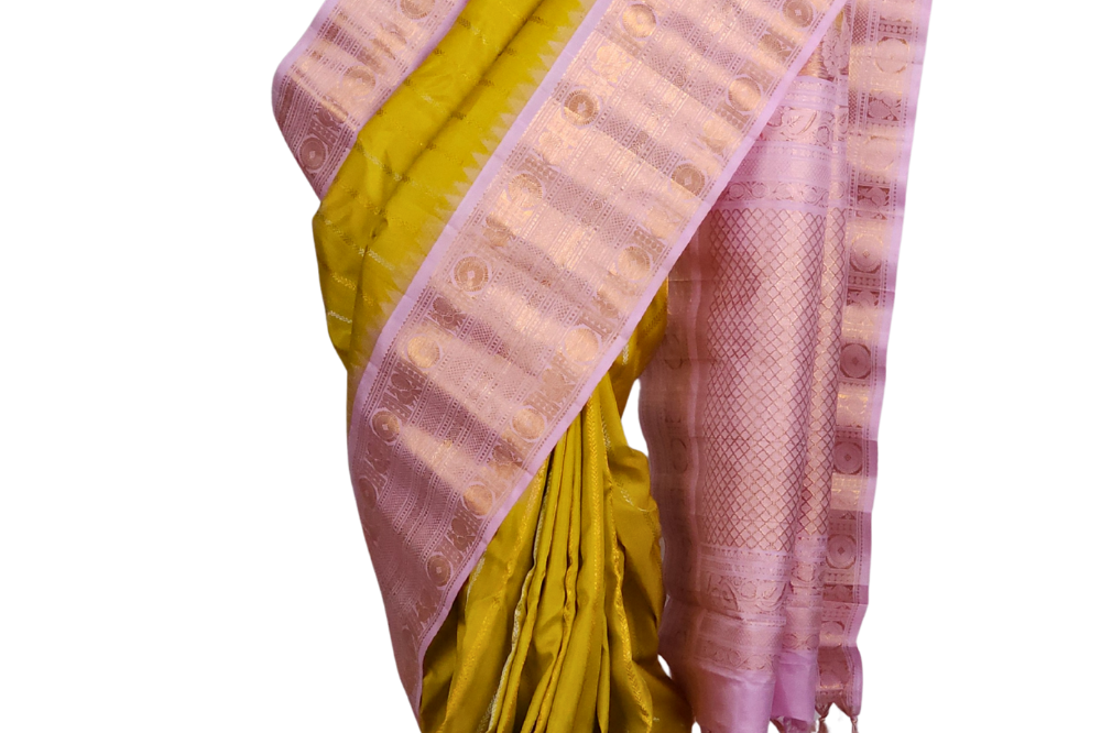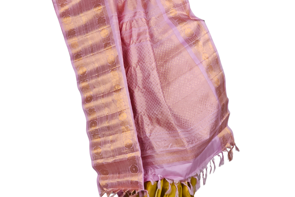 Dual Shade Of Loust Pink & Gold Gadwal Silk Saree