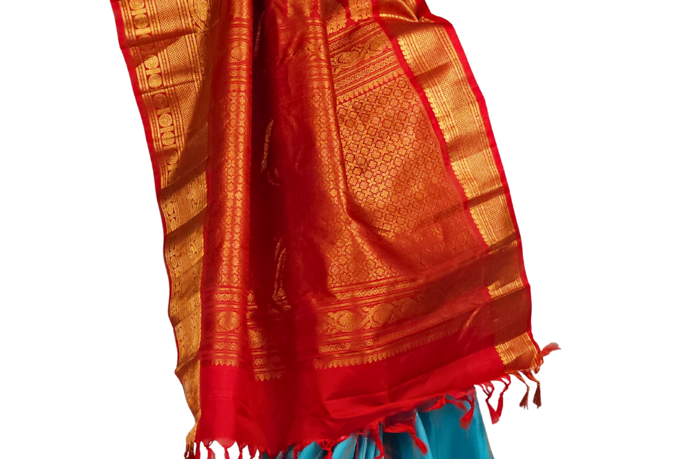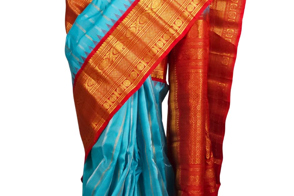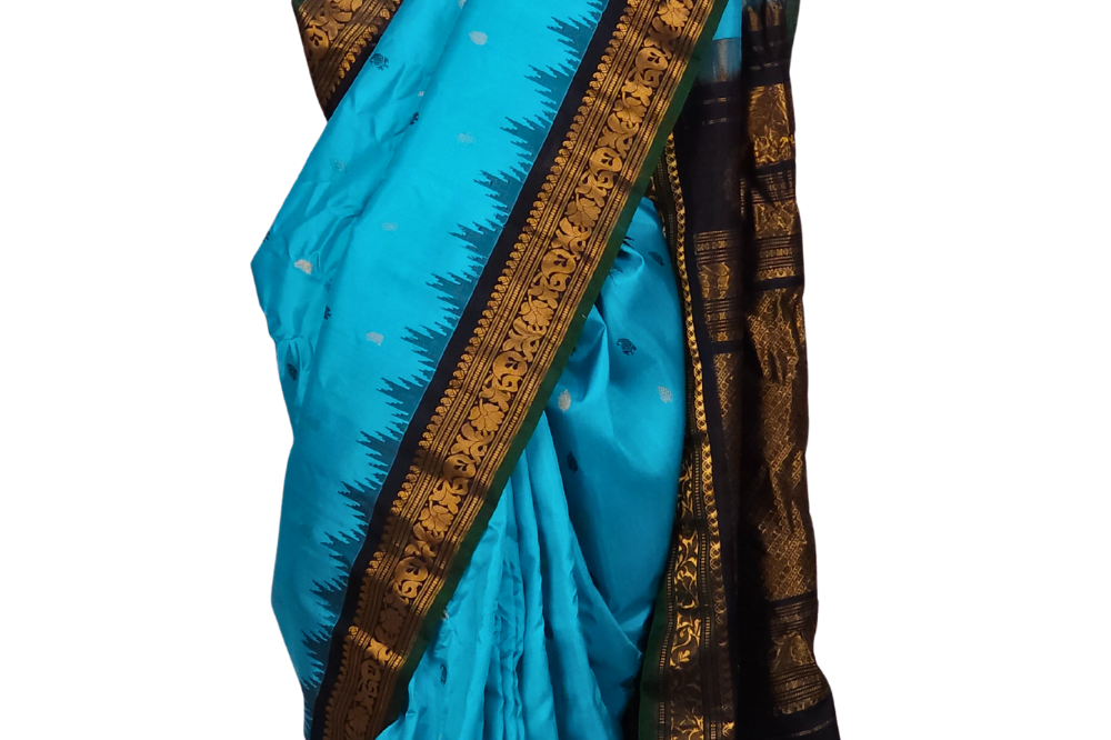 Light Copper Sulphate Blue Gadwal Silk Saree
