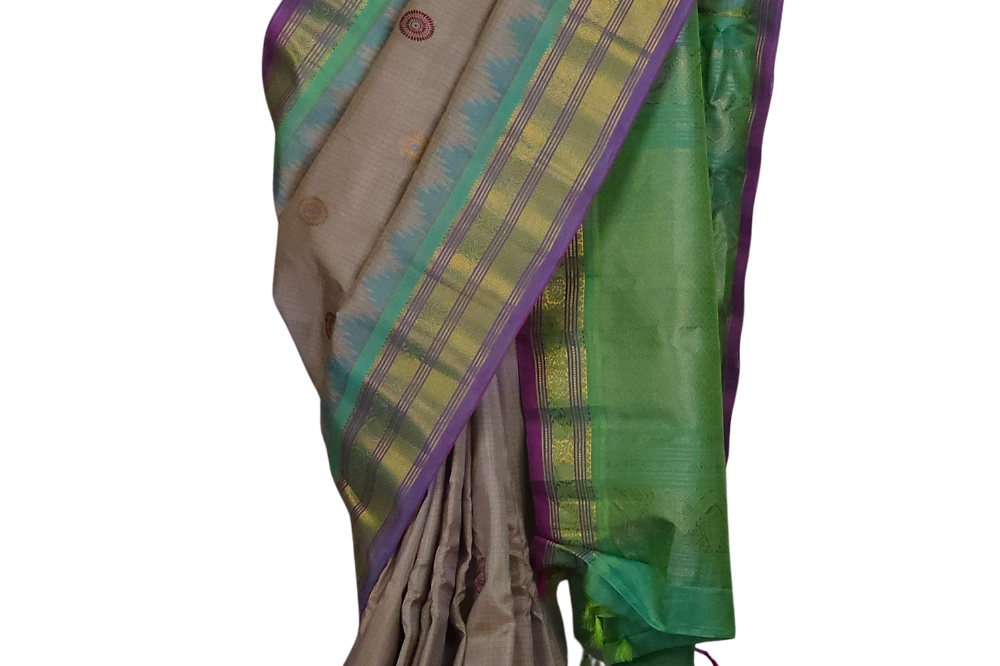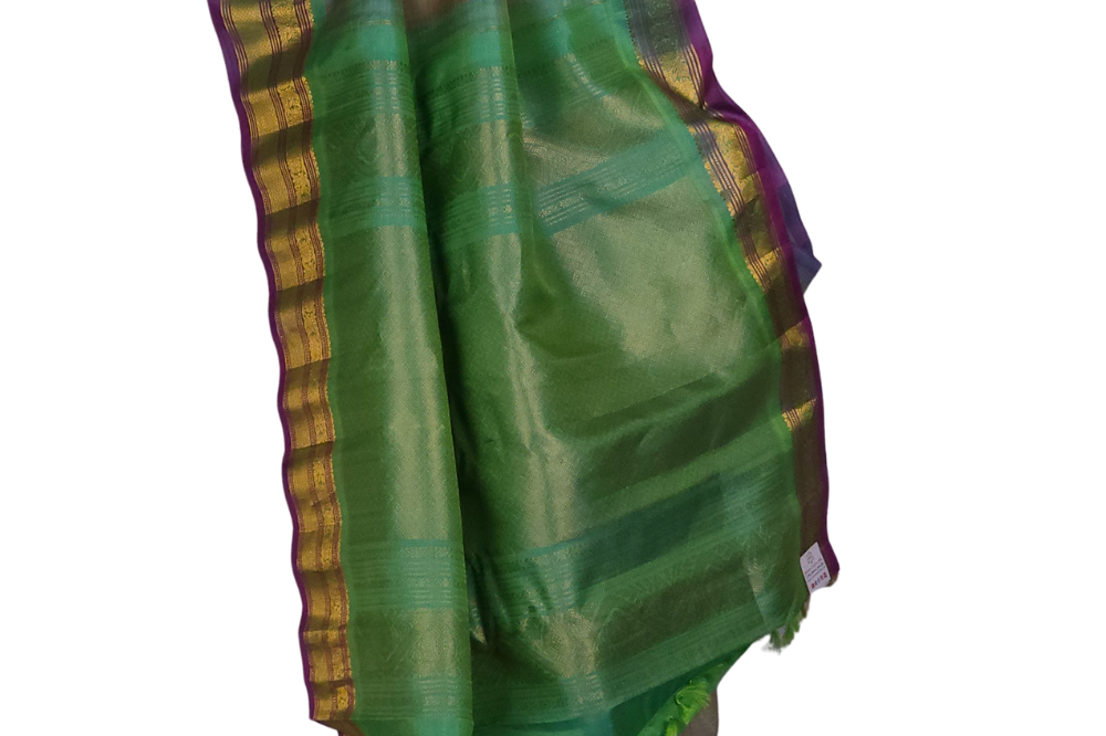 Dual Shade Of Sea Green & Gold Gadwal Silk Saree