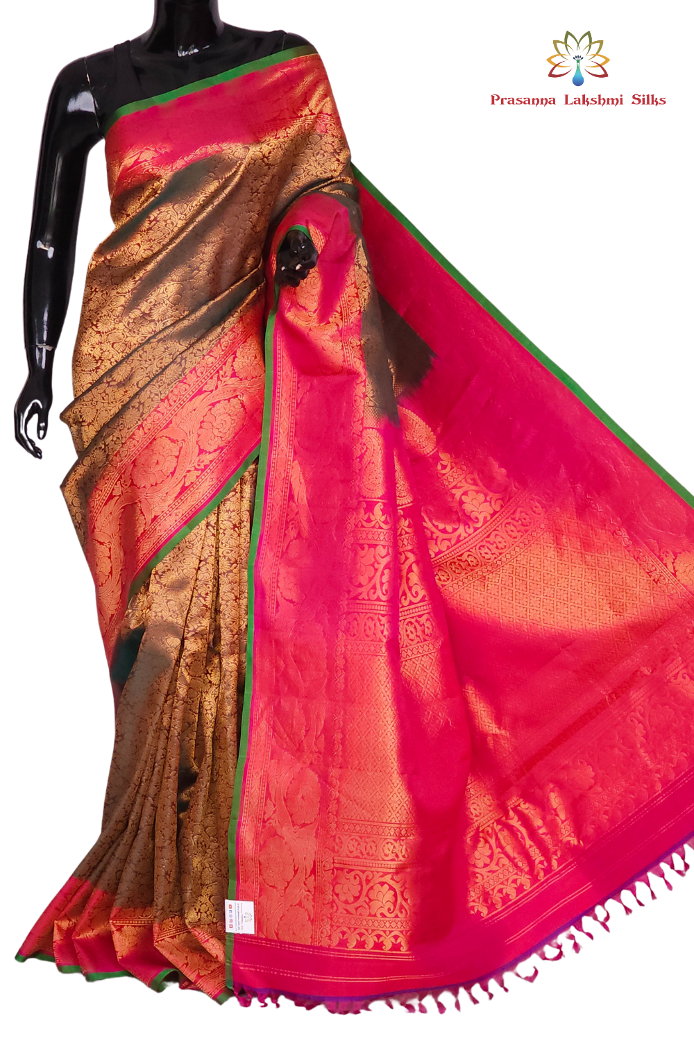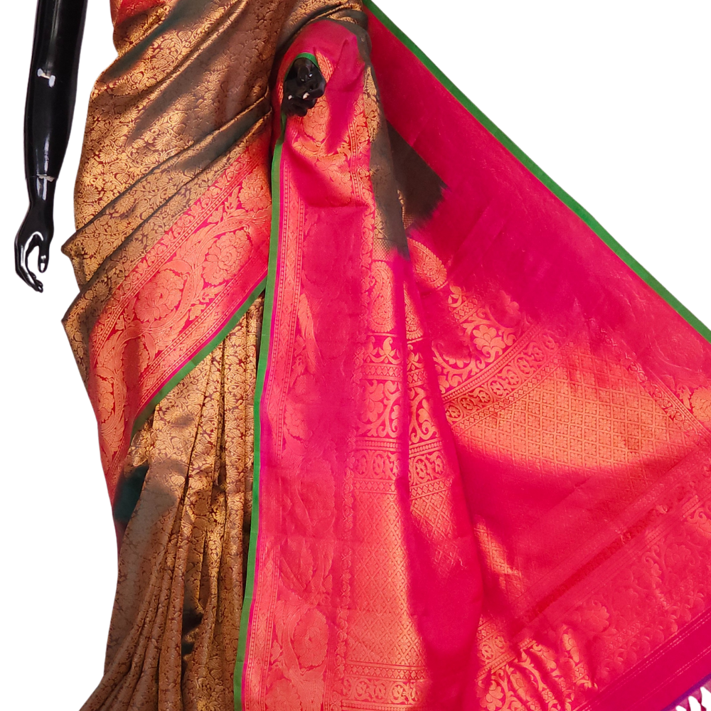 Dual Shade Of Green & Pink Gadwal Silk Saree