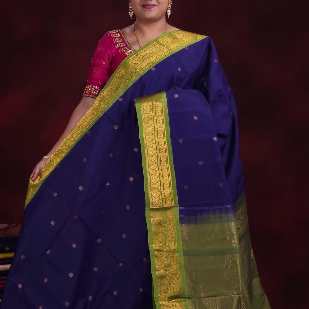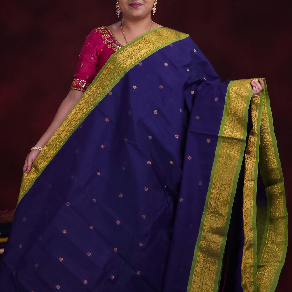 Elevate your style with our stunning Gadwal Silk Cotton Saree, featuring Intricate zari woven motifs with zari woven self borders luxurious brocade pallu paired with blouse ...