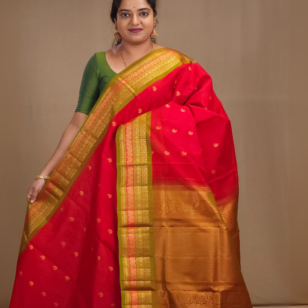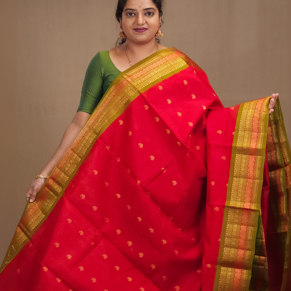 Mirchi Red Gadwal Silk Cotton Saree