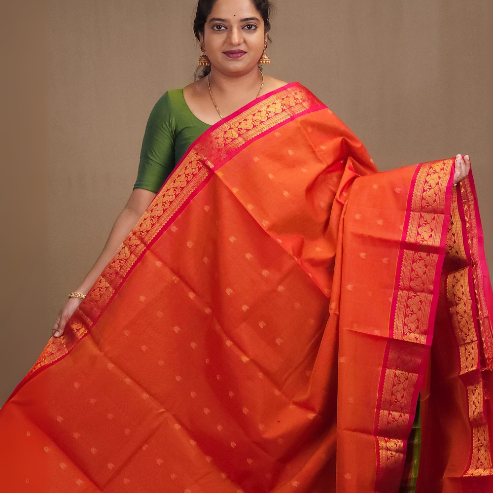 Elevate your style with our stunning Gadwal Silk Cotton Saree, featuring Intricate zari woven motifs with zari woven self borders luxurious brocade pallu paired with blouse ...