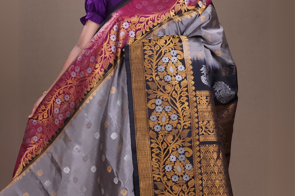Experience the timeless beauty of 100% Pure Silk Handloom Gadwal Sarees, crafted by skilled artisans and certified by Silk Mark for purity. These sarees feature intricate handwoven zari patterns, rich textures, and a lightweight feel that makes them ideal for weddings, festive occasions, and cultural celebrations.