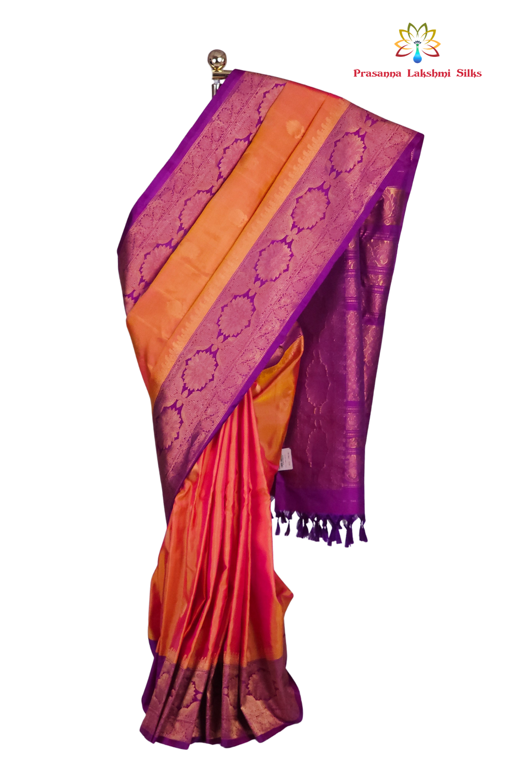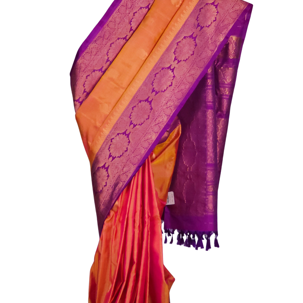 Dual Shade Of Purple & Yellow Gadwal Silk Saree