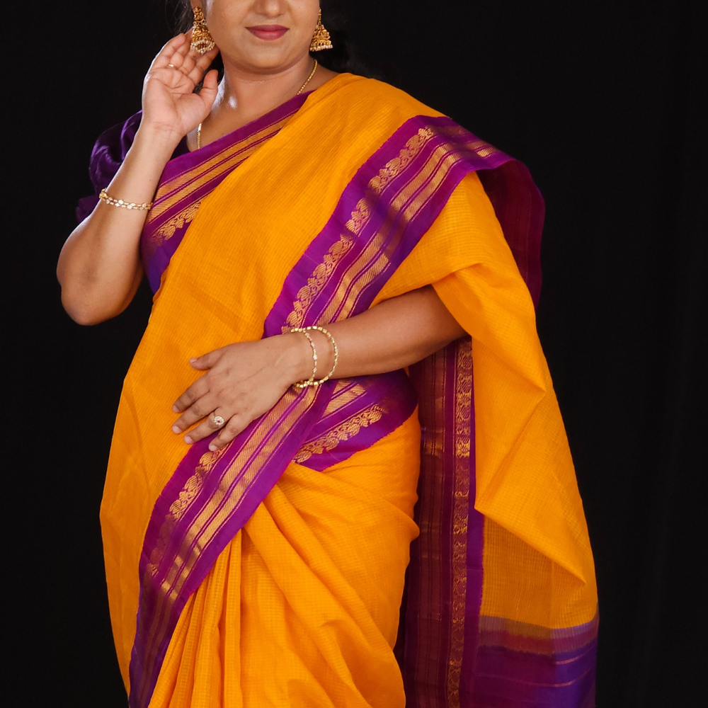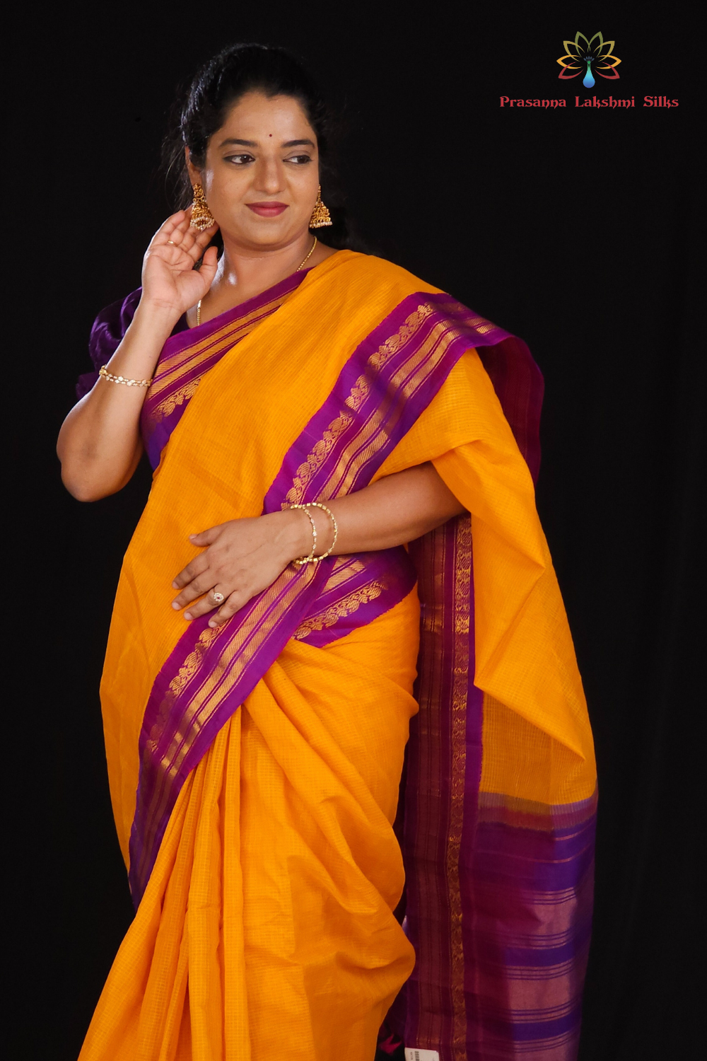 Elevate your ethnic style with our stunning Handloom Light yellow colour Gadwal Pure Cotton Saree with Vibrant zariwoven red colour borders beauiful three-line pallu and without blouse