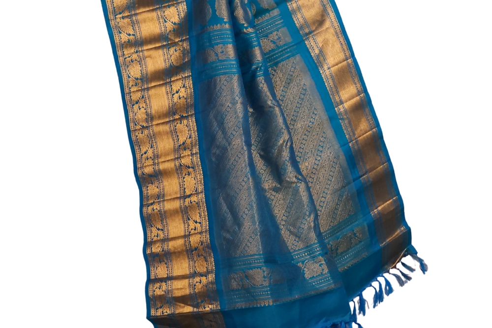 Experience the timeless beauty of 100% Pure Silk Handloom Gadwal Sarees, crafted by skilled artisans and certified by Silk Mark for purity. These sarees feature intricate handwoven zari patterns, rich textures, and a lightweight feel that makes them ideal for weddings, festive occasions, and cultural celebrations.