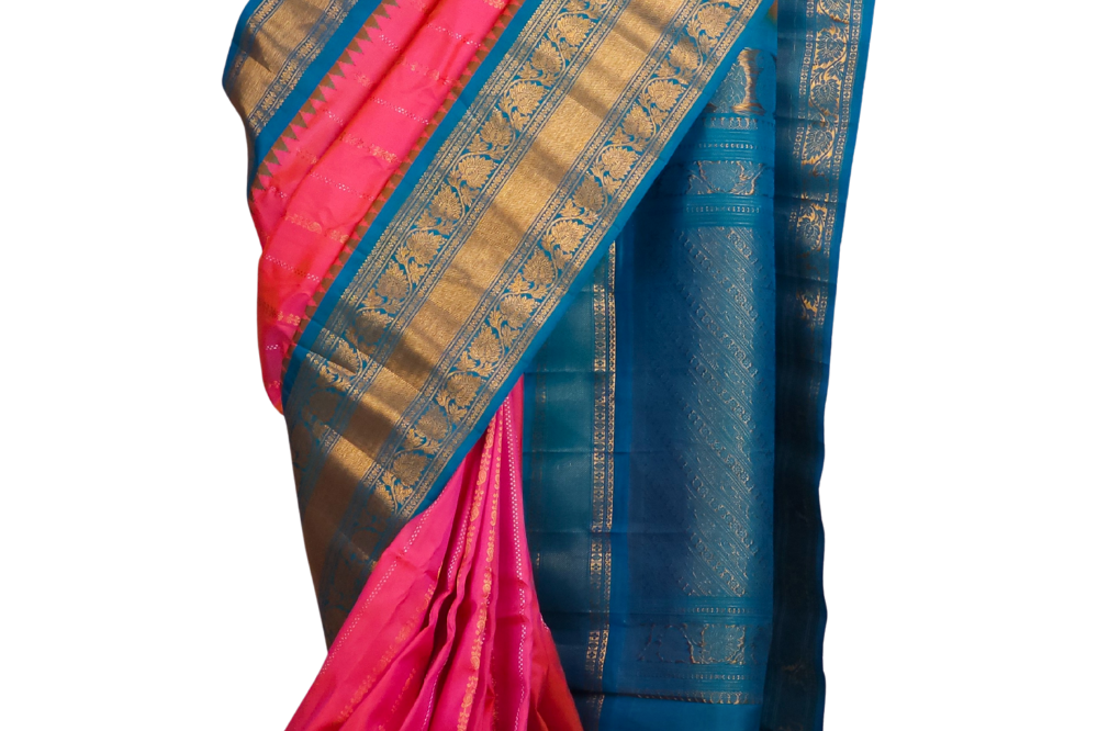 Dual Shade Of Loust Pink & Gold Gadwal Silk Saree