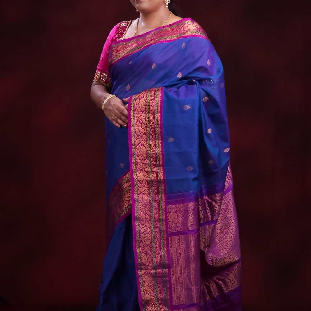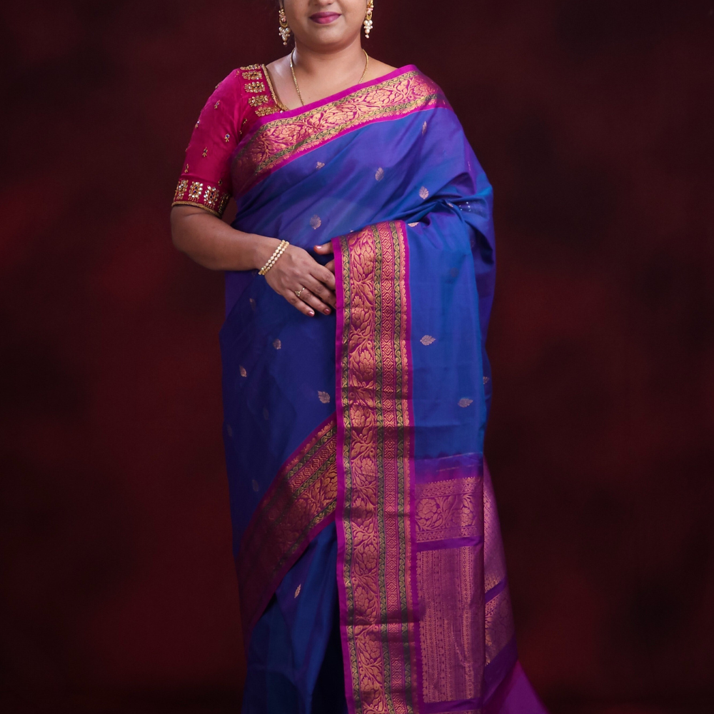 Blue Gadwal Silk Cotton Saree