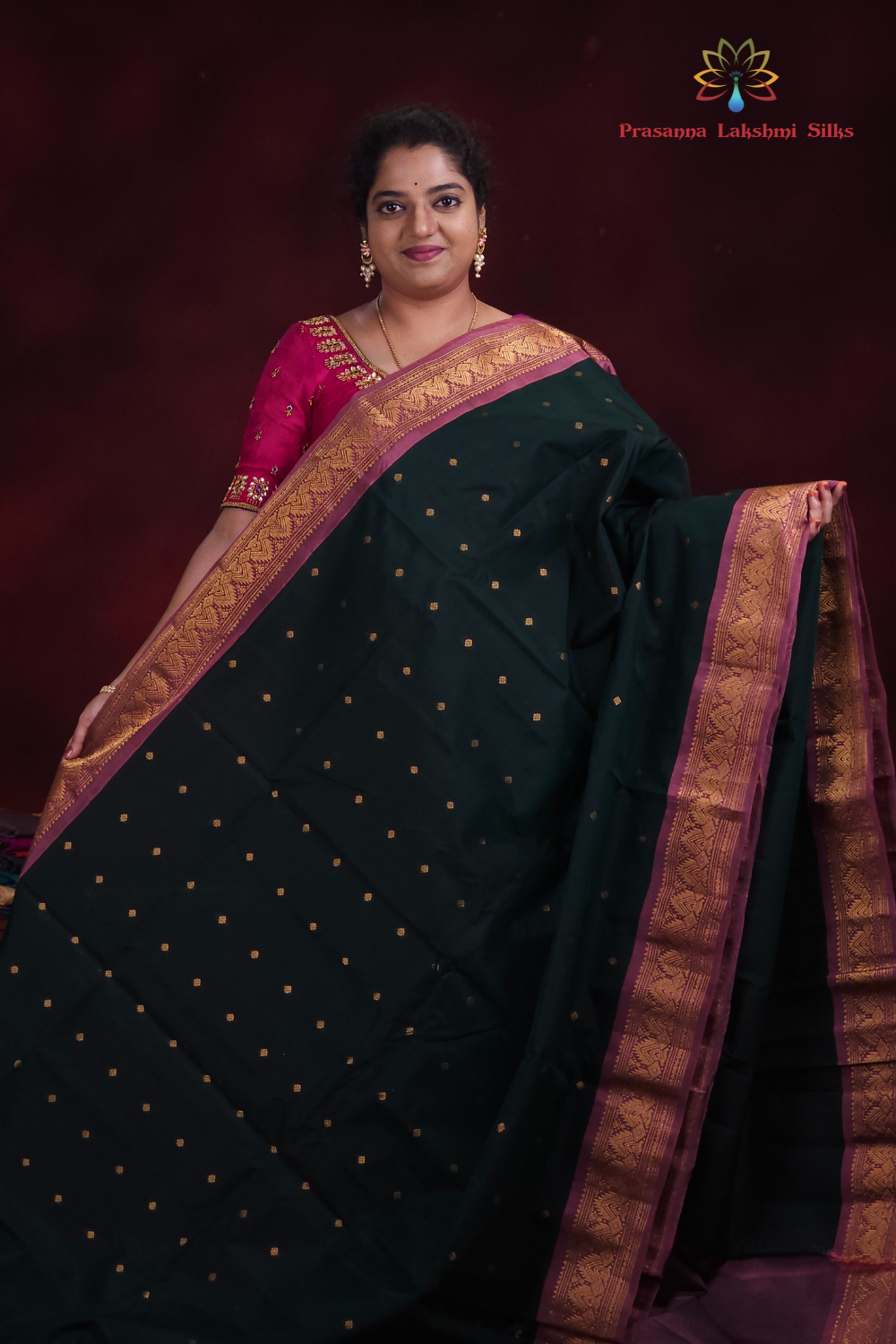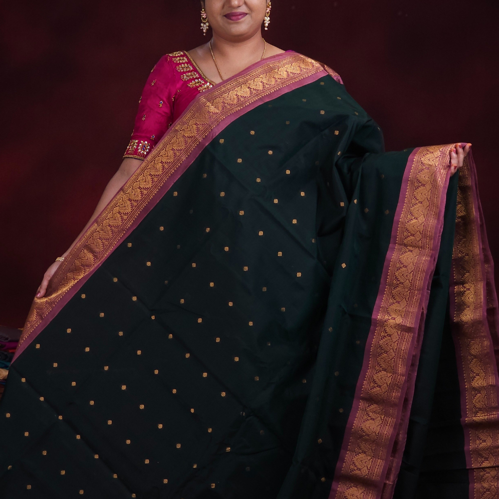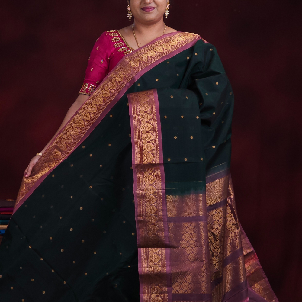 Dark Bottle Green and Grapewine Gadwal Silk Cotton Saree