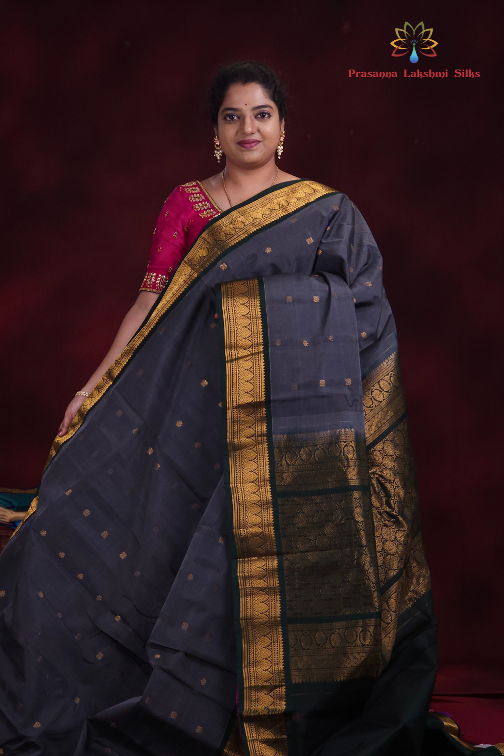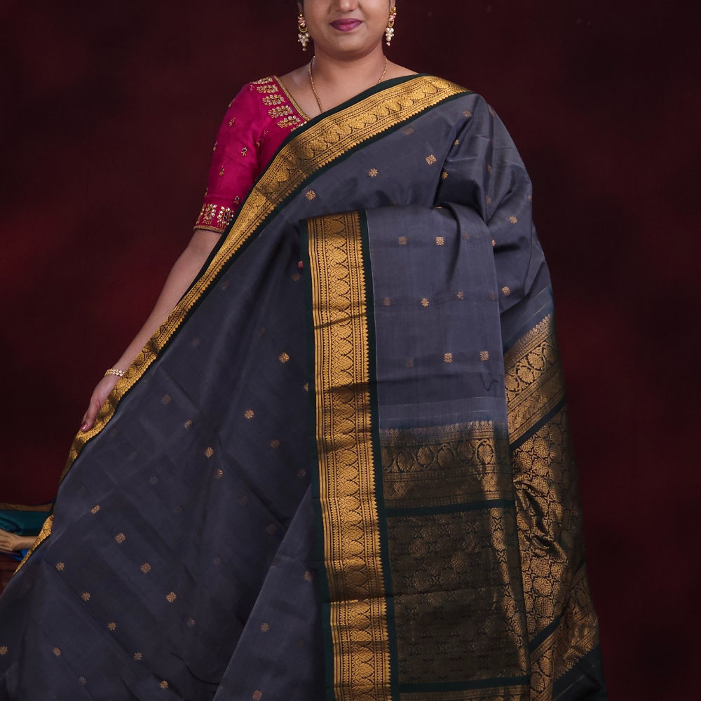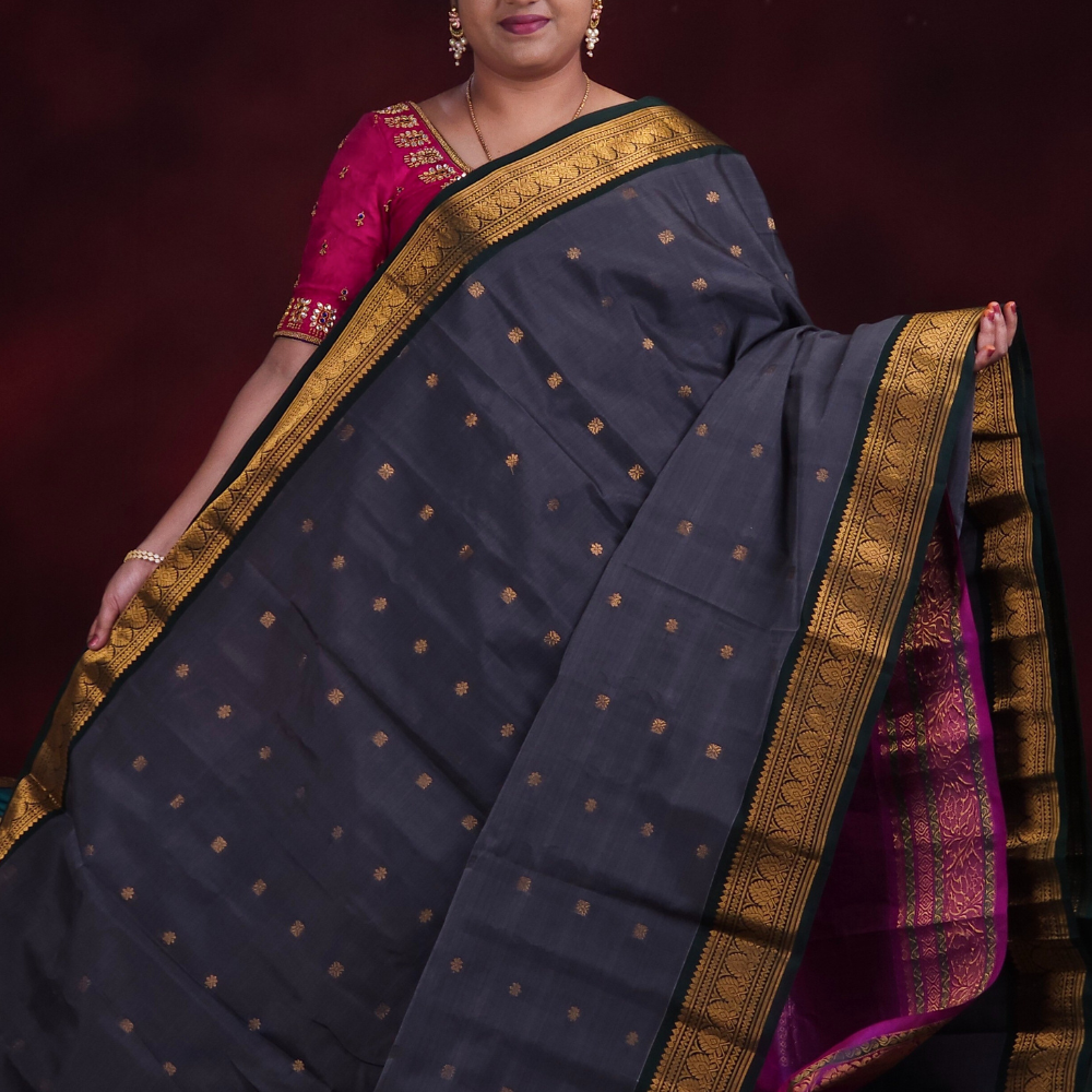 Grey and Bottle Green Gadwal Silk Cotton Saree