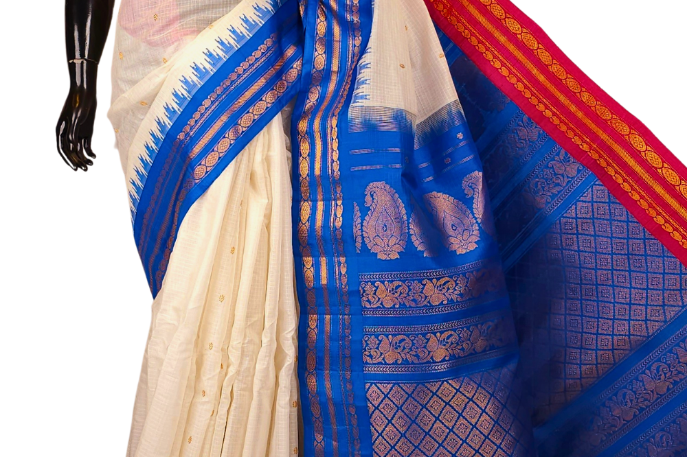 Experience the timeless beauty of 100% Pure Silk Handloom Gadwal Sarees, crafted by skilled artisans and certified by Silk Mark for purity. These sarees feature intricate handwoven zari patterns, rich textures, and a lightweight feel that makes them ideal for weddings, festive occasions, and cultural celebrations.