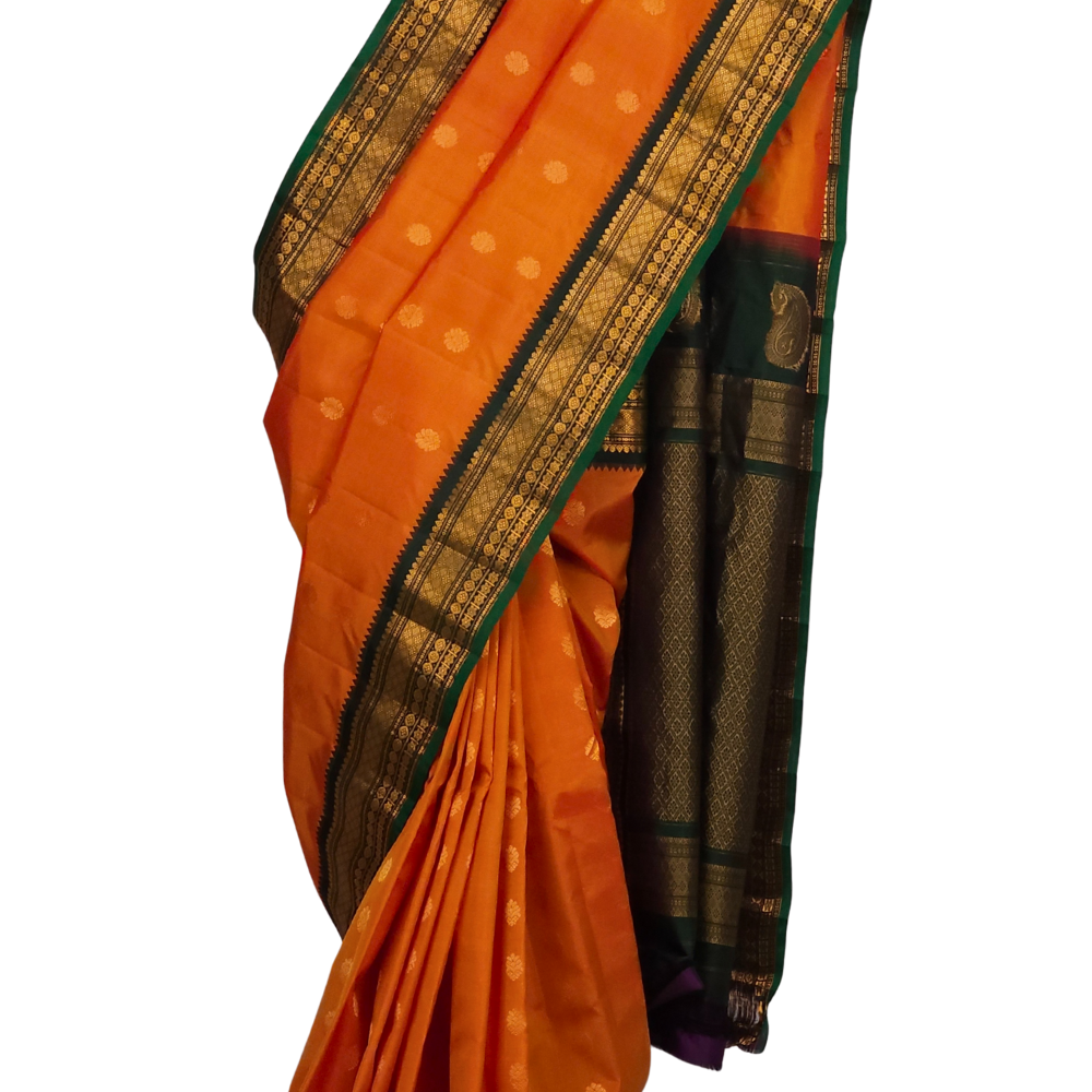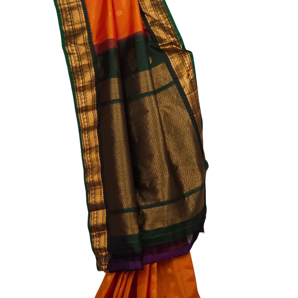 Yellowish Orange Gadwal Silk Saree