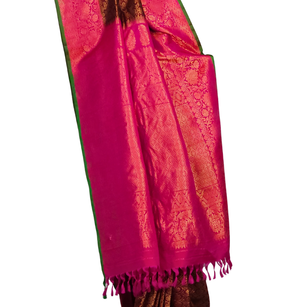 Chocolate Brown Gadwal Silk Saree