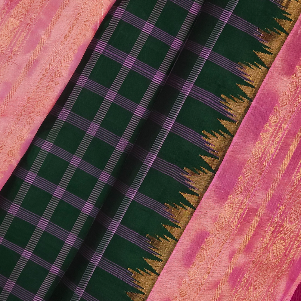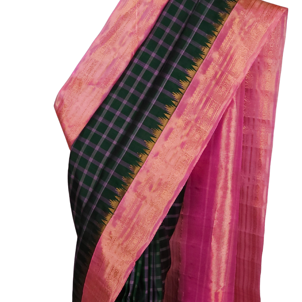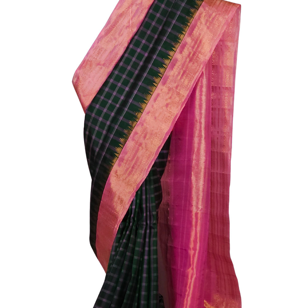 Bottle Green Gadwal Tissue Silk Saree