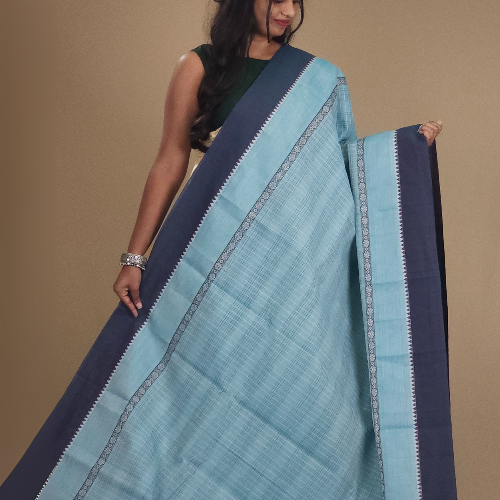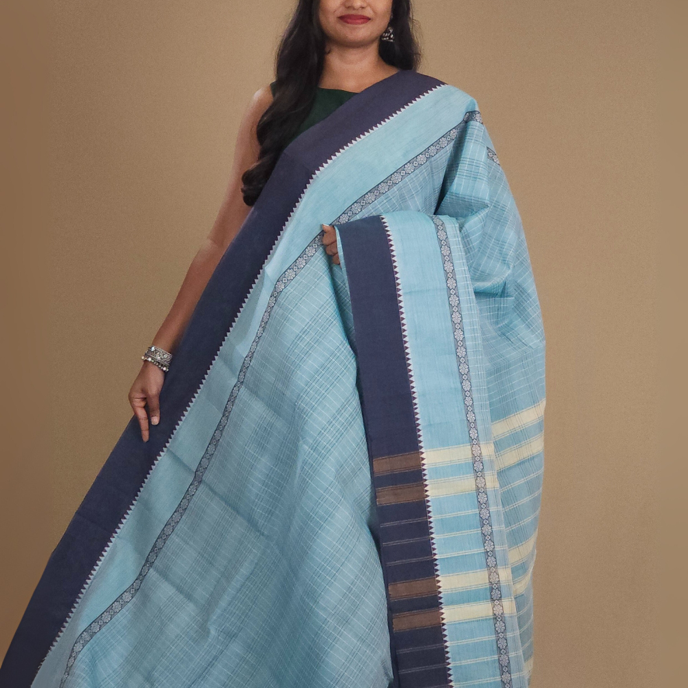 Baby Blue Narayanpet Cotton Saree