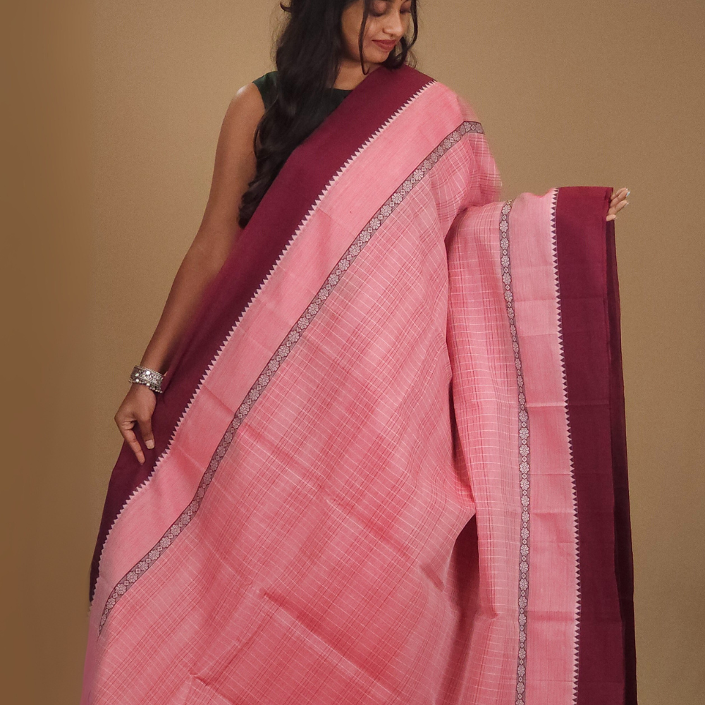 Baby Pink Narayanpet Cotton Saree