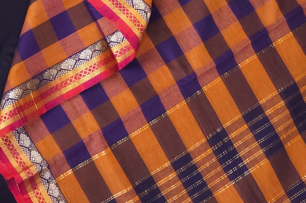 Mustard Yellow & Blue Venkatagiri cotton