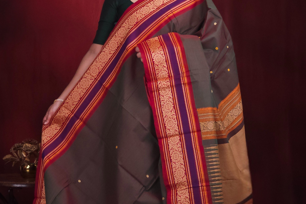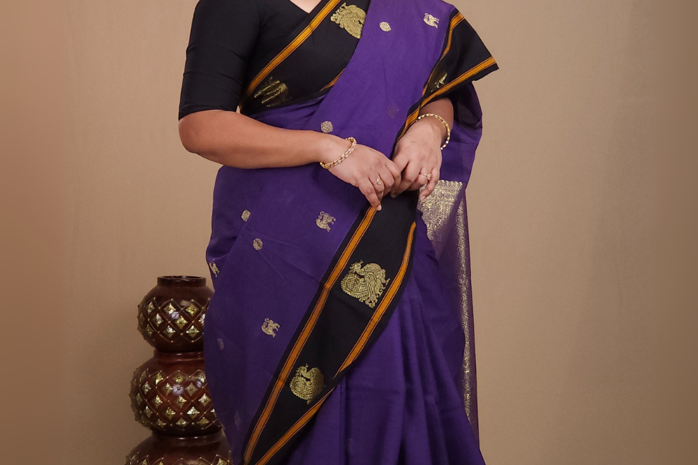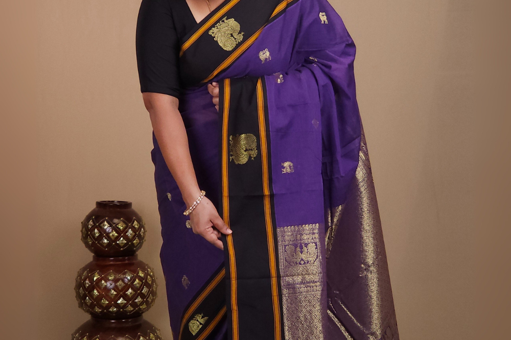 Violet and Black Kanjeevaram Cotton