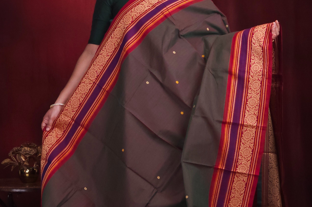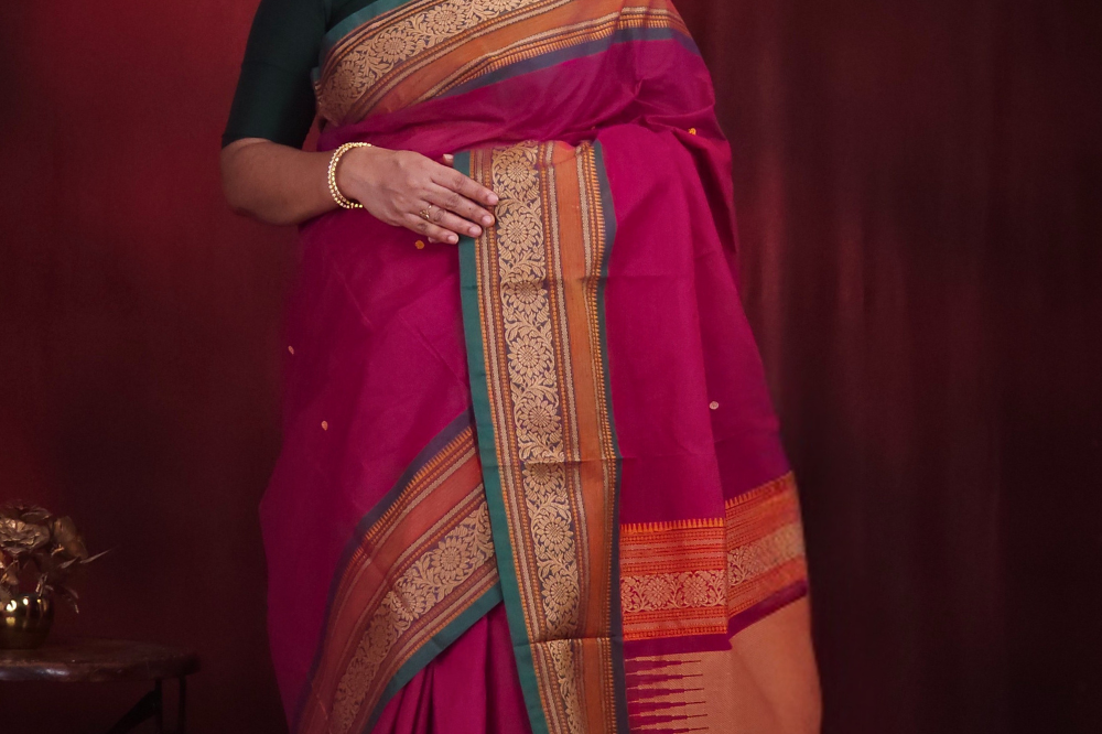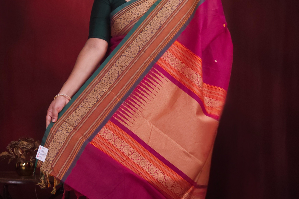 Dark Majenta & Green Kanjeevaram Cotton Saree