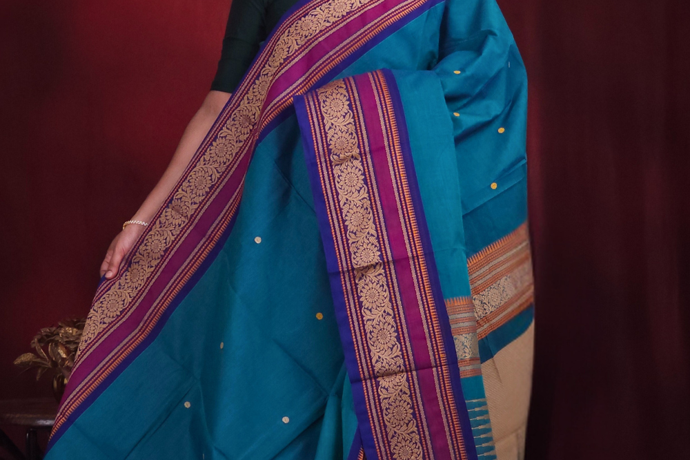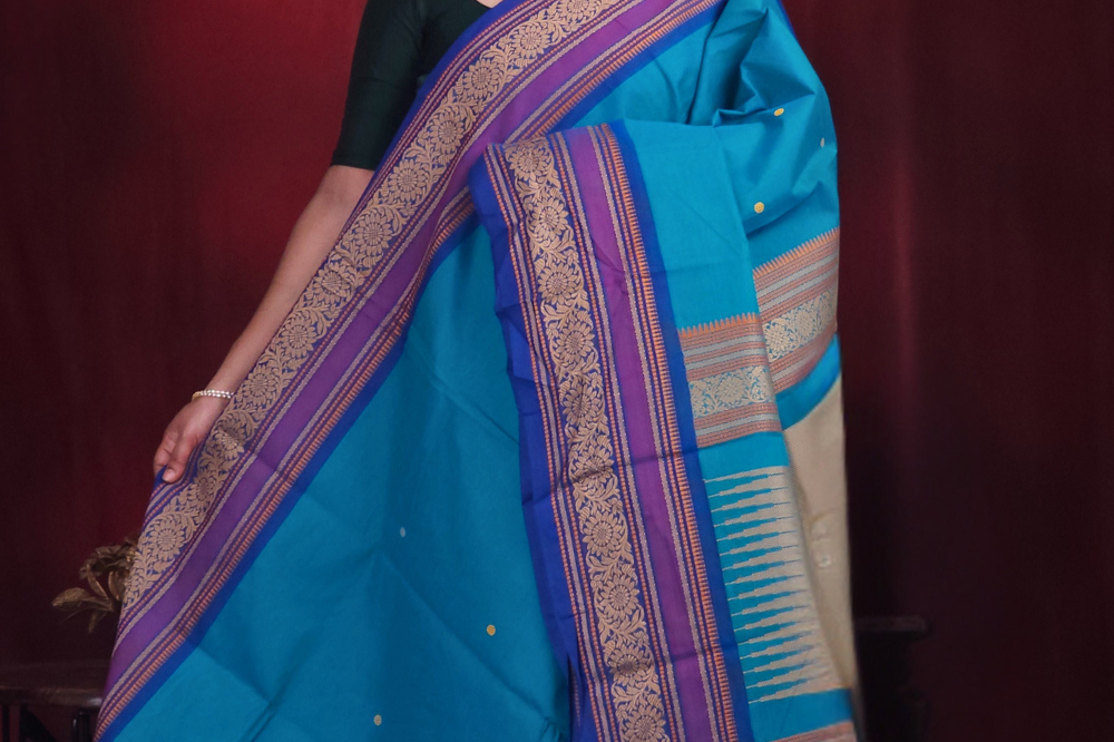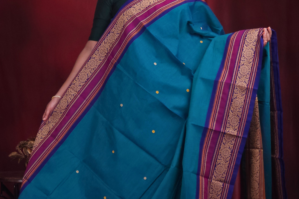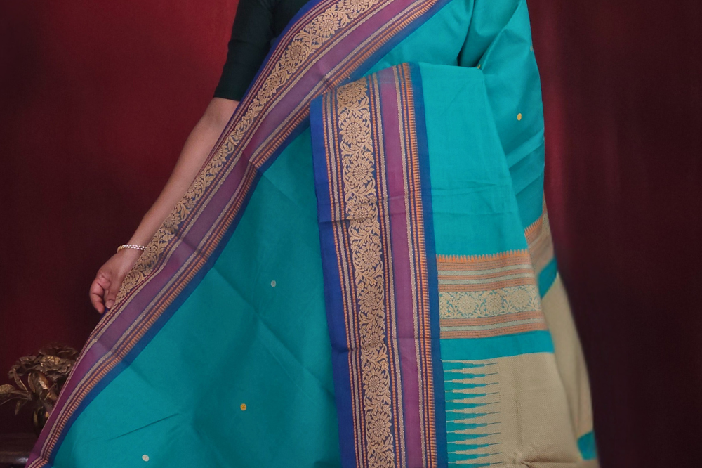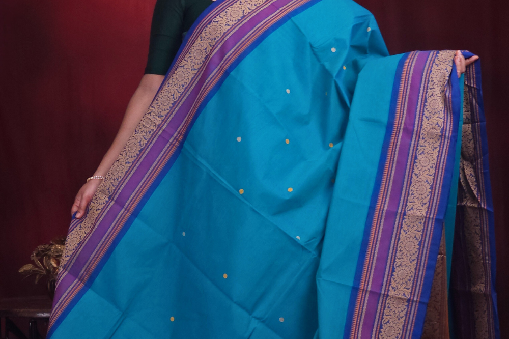 Peacock Blue Kanjeevaram Cotton Saree