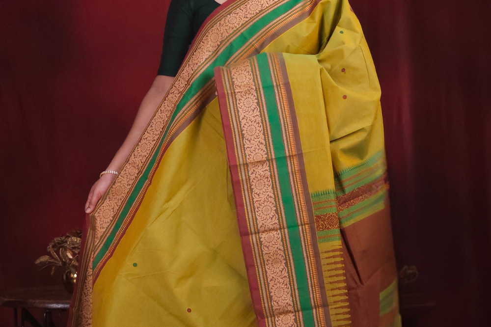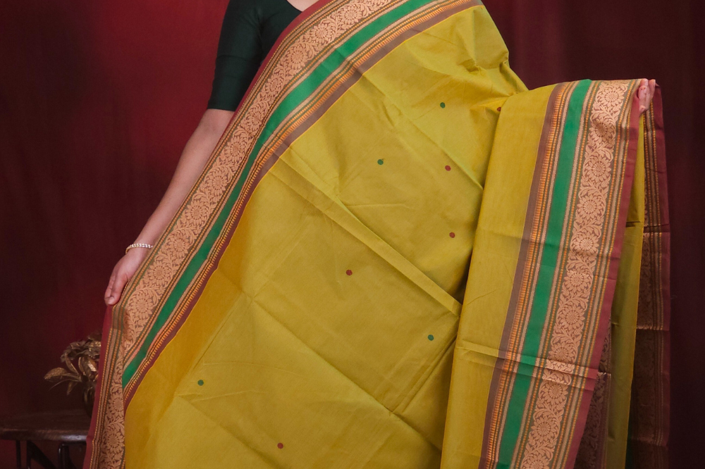 Mustard Green Kanjeevaram Cotton Saree