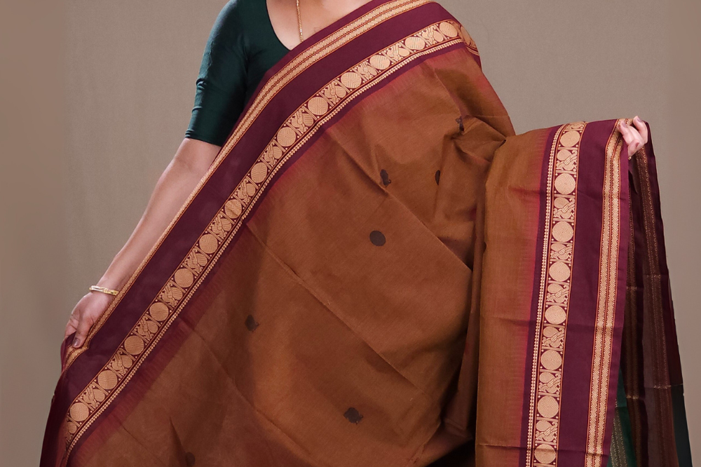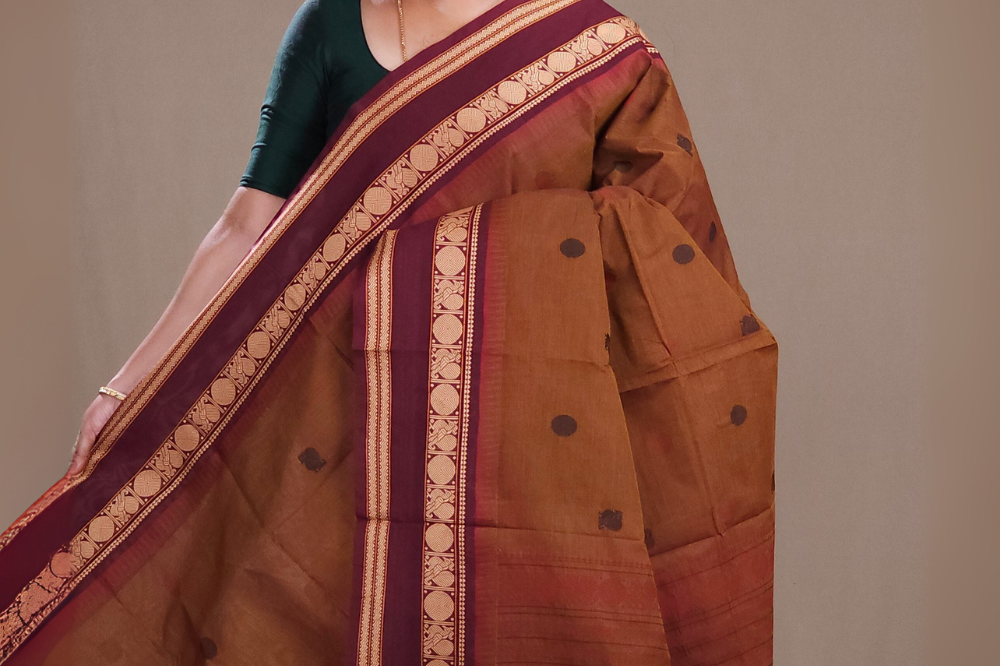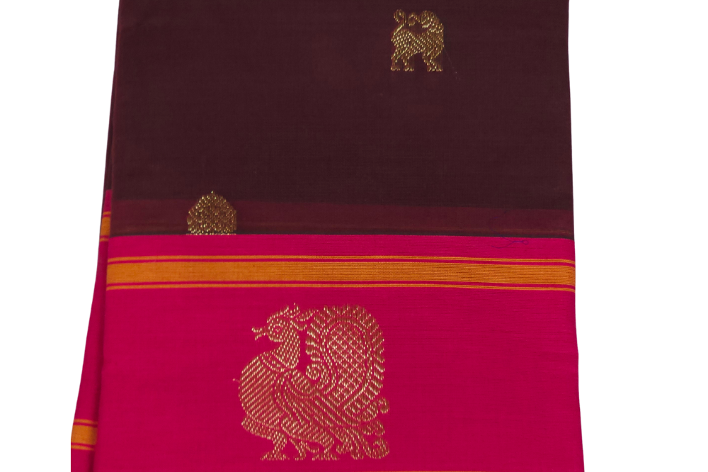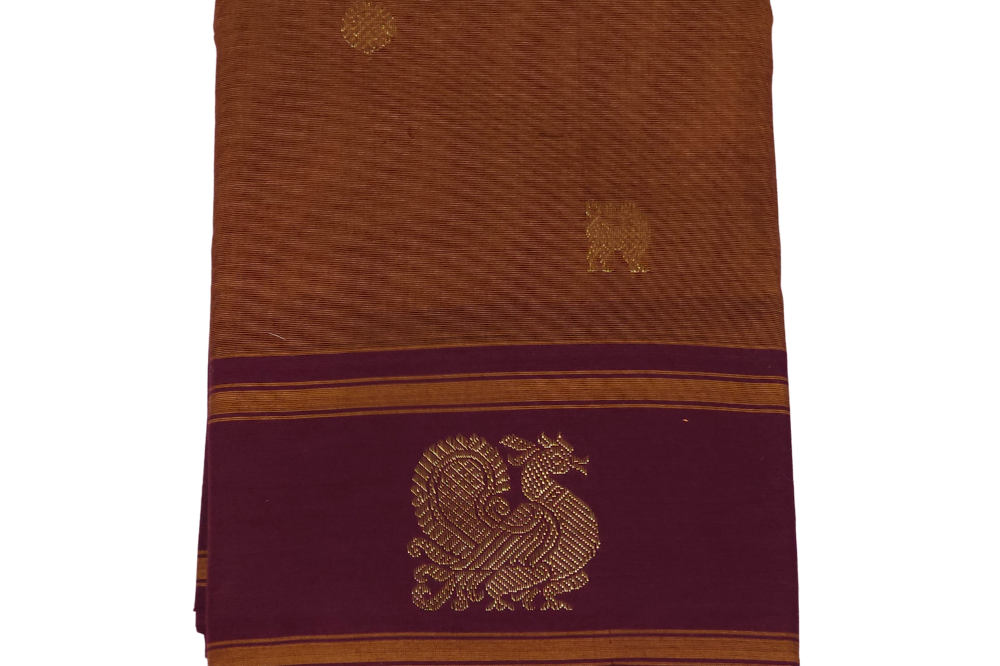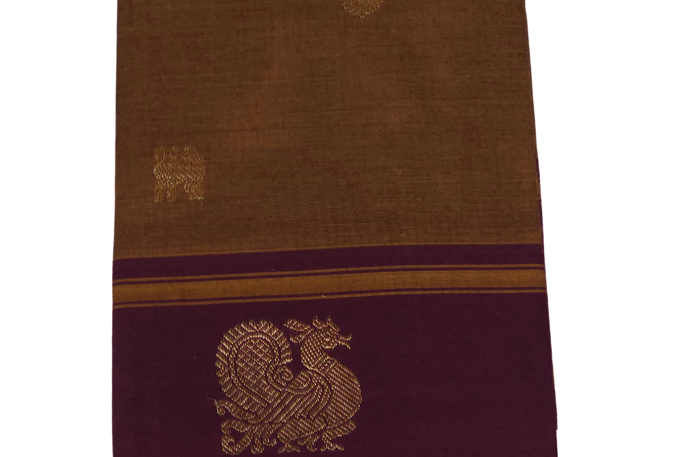 Light Brown and Deep Maroon Kanjeevaram Cotton Saree