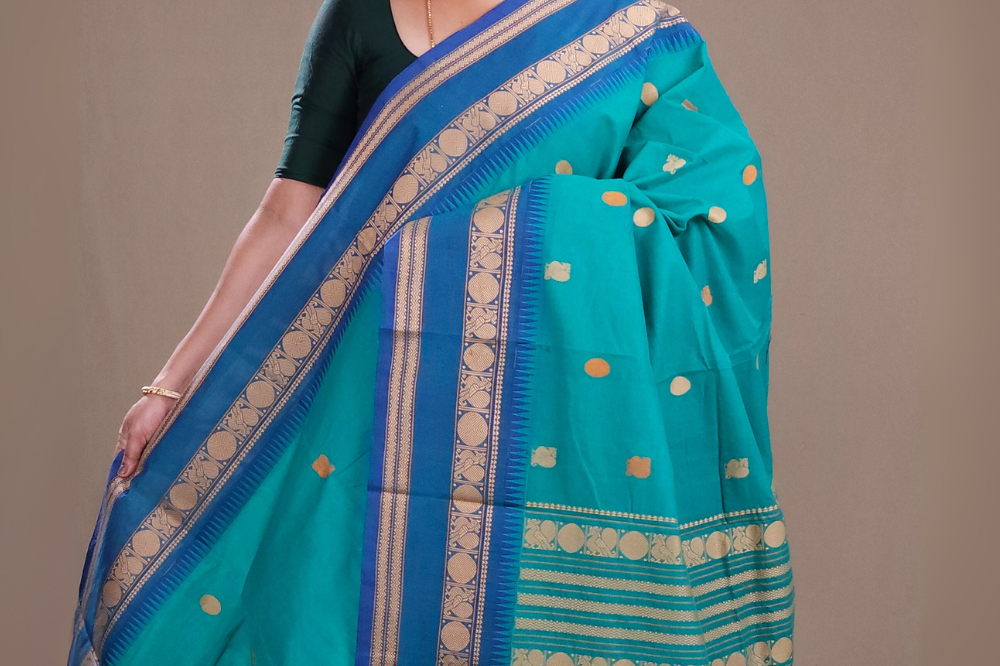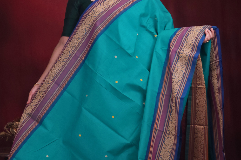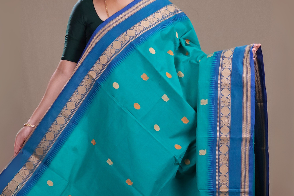 Teal Green Kanjeevaram Cotton Saree
