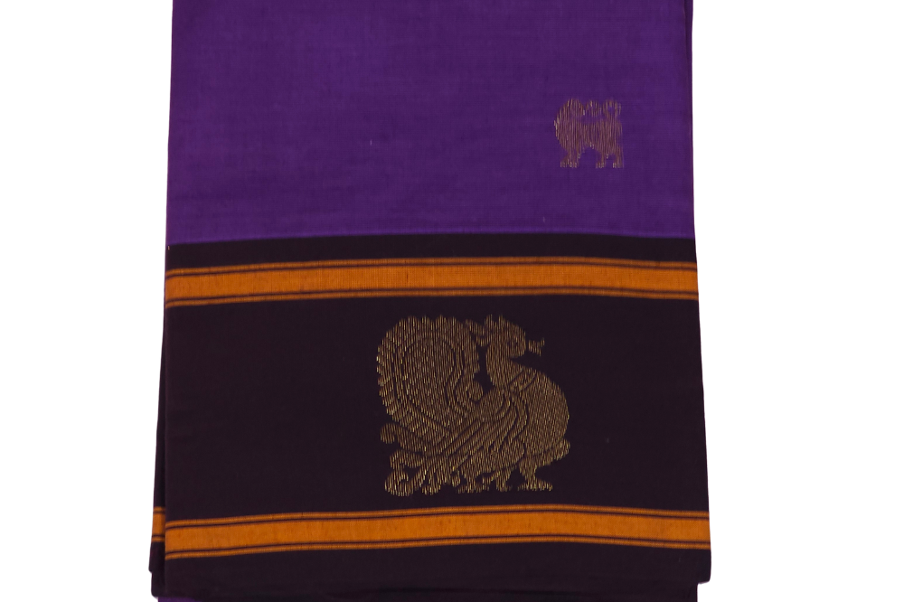 Deep Violet and Black Kanjeevaram Cotton Saree