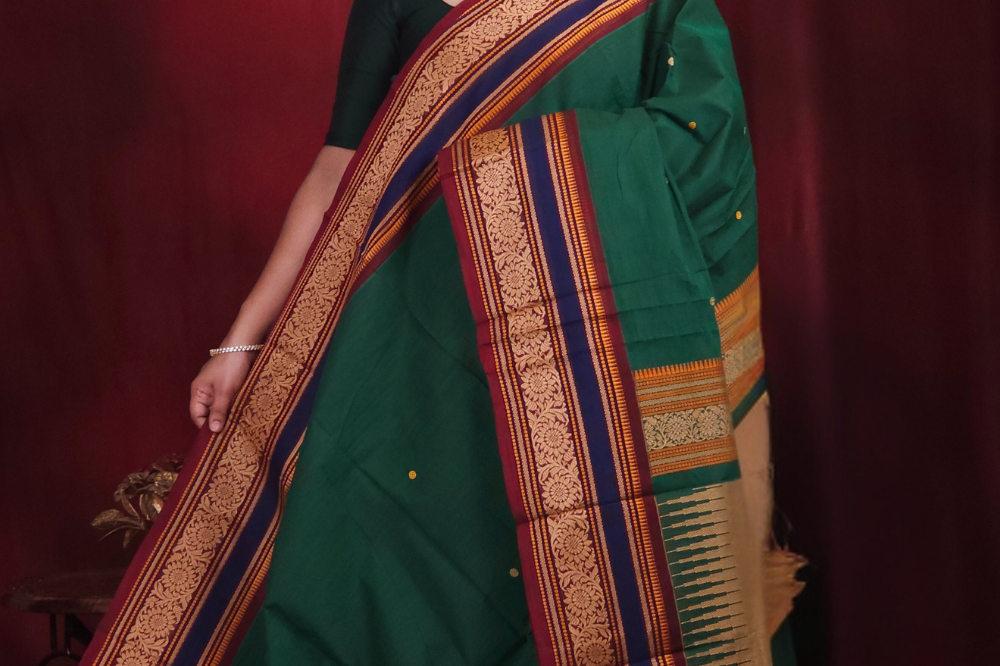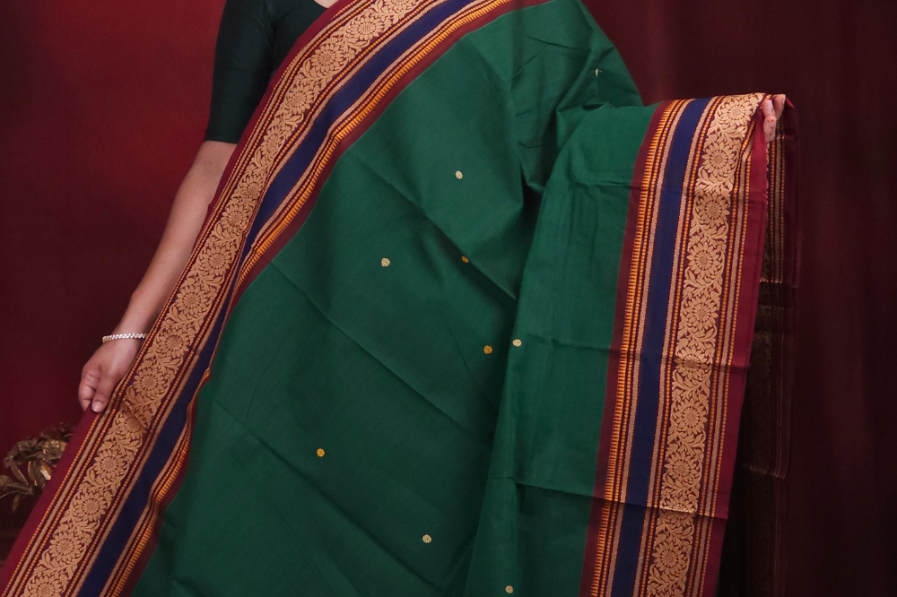Dark Green Kanjeevaram Cotton Saree